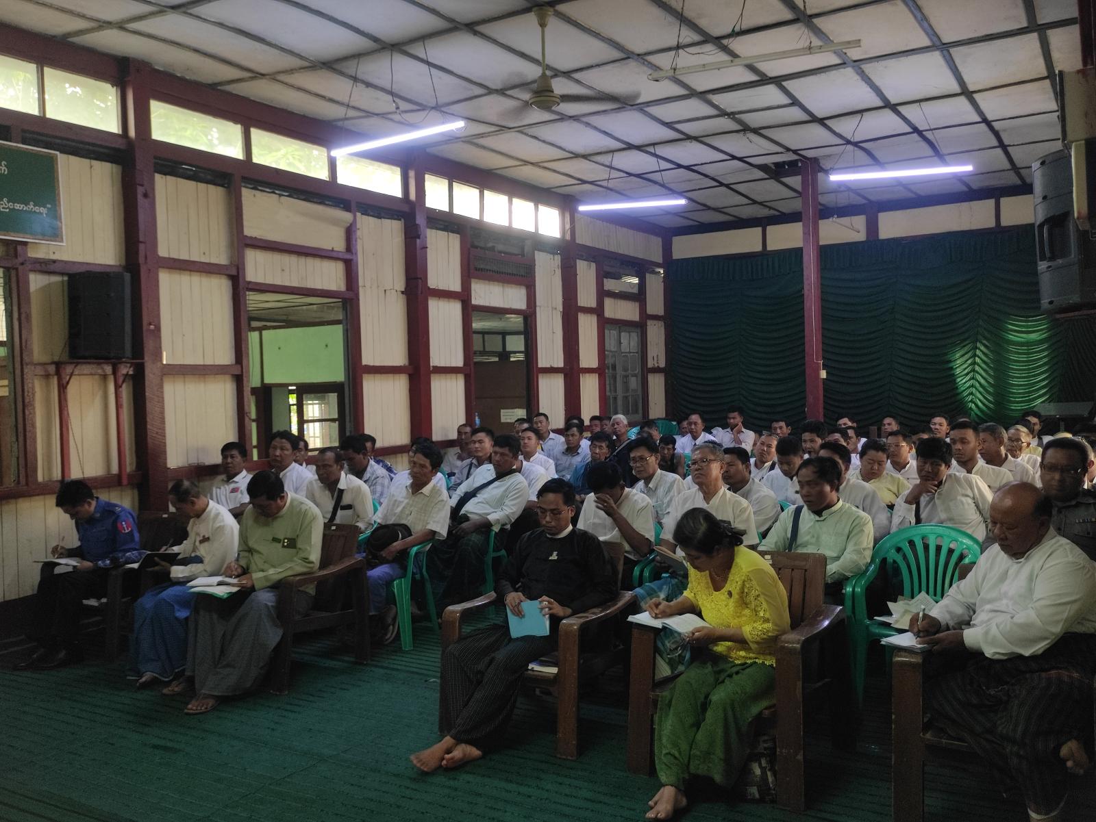 အဆိုပါတွေ့ဆုံပွဲအခမ်းအနားတွင် ခရိုင်စီမံခန့်ခွဲရေးနှင့်အုပ်ချုပ်ရေးကော်မတီဥက္ကဋ္ဌနှင့် အဖွဲ့ဝင်များ၊ မြို့နယ်စီမံခန့်ခွဲရေးနှင့်အုပ်ချုပ်ရေးကော်မတီဥက္ကဋ္ဌနှင့်အဖွဲ့ဝင်များ၊ မြို့နယ်ကော်မရှင်အဖွဲခွဲဥက္ကဋ္ဌနှင့် အဖွဲ့ဝင်များ၊ မြို့နယ်အတွင်းမဲရုံများတွင် ကွင်းဆင်းကြီးကြပ်ဆောင်ရွက်ရမည့် ဌာနဆိုင်ရာအကြီးအကဲများက တက်ရောက်လာကြသော မြို့နယ်ရွေးကောက်ပွဲ ကော်မရှင်အဖွဲ့ခွဲများ၊ အုပ်ချုပ်ရေးမှူးများ၊ ရပ်/ ကျေးကော်မရှင်ဥက္ကဋ္ဌနှင့် အတွင်းရေးမှူးများ၊ မဲရုံမှူးများနှင့်စာရေးဝန်ထမ်းများက မဲပေးစက်ဖြင့် စမ်းသပ်မဲပေးခြင်း လုပ်ငန်းများအား ဆောင်ရွက်ခဲ့ကြောင်း သိရသည်။
