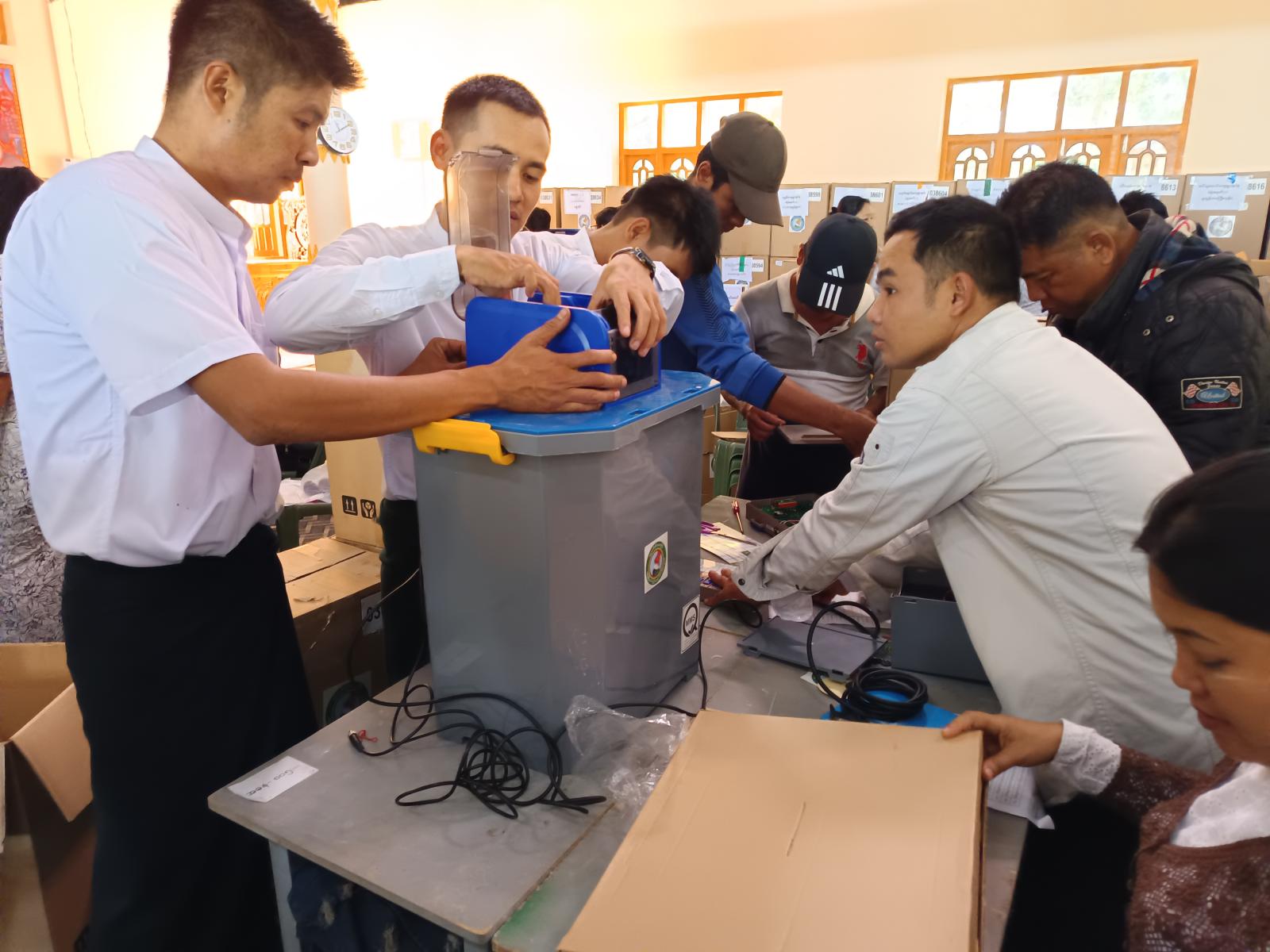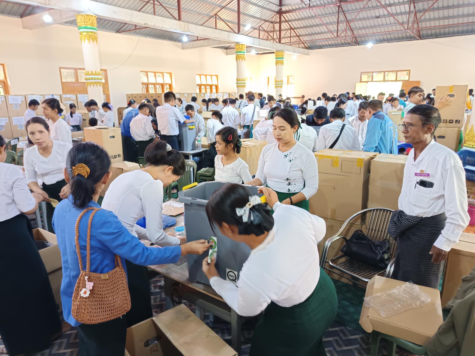 ဧရာဝတီတိုင်းဒေသကြီး၊ မအူပင်ခရိုင်၊ ဓနုဖြူမြို့နယ်တွင် ၂၀၂၅ ခုနှစ် ပါတီစုံဒီမိုကရေစီအထွေထွေရွေးကောက်ပွဲ အပိုင်း(၃)ကို ဇန်နဝါရီလ(၂၅)ရက်နေ့တွင် ကျင်းပဆောင်ရွက်သွားမည်ဖြစ်ရာ ရွေးကောက်ပွဲ၌ ဆန္ဒမဲပေးရာတွင် အသုံးပြုမည့် မြန်မာအီလက်ထရောနစ်မဲပေးစက်(MEVM)များ စစ်ဆေးခြင်းနှင့် INSTALLATION တပ်ဆင်အသုံးပြုခြင်းကို ယနေ့နံနက်(၉)နာရီအချိန်က ရွှေဟင်္သာကျောင်းတိုက် ဗိမာန်တွင် ပြုလုပ်ဆောင်ရွက်ကြောင်းသိရသည်။