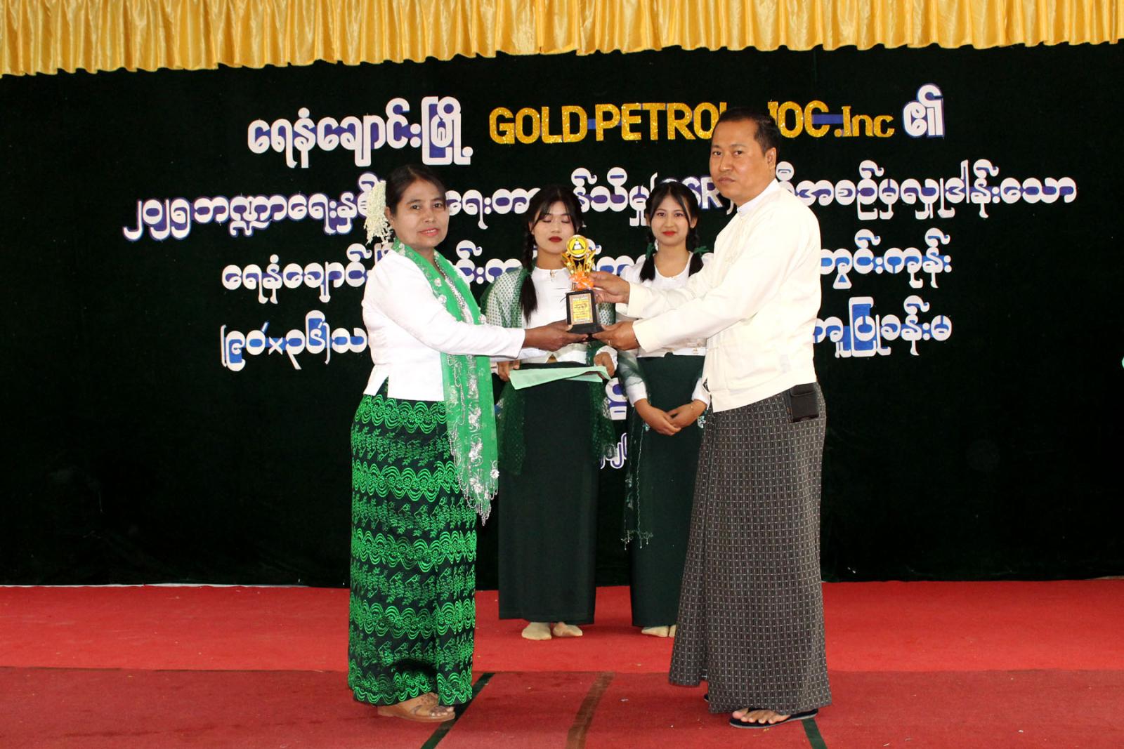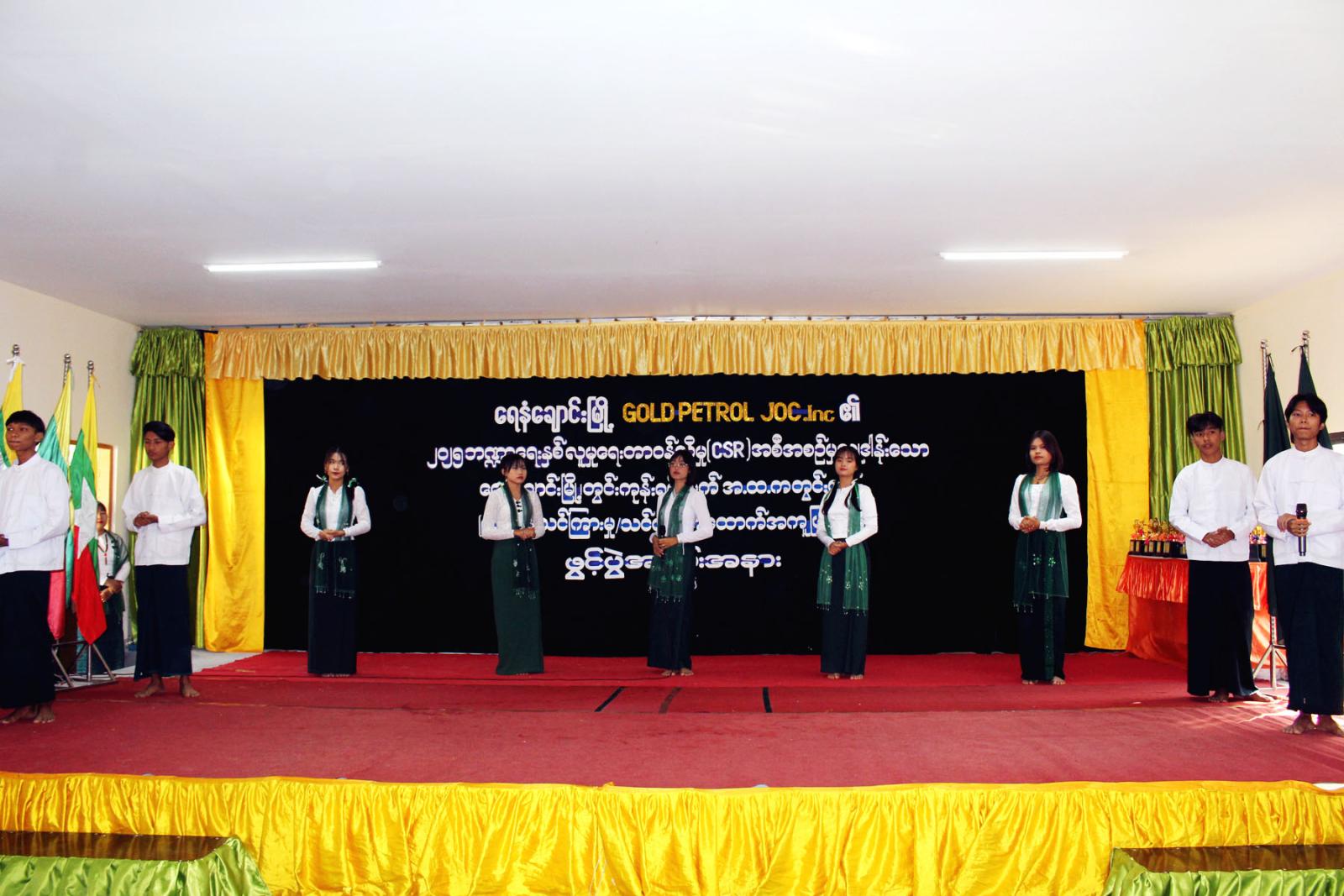 မကွေးတိုင်းဒေသကြီး ရေနံချောင်းမြို့ တွင်းကုန်းရပ်ကွက် အ.ထ.က(တွင်းကုန်း)ကျောင်း၌ Gold Petrol Joint Operating Company Inc မှ ၂၀၂၅ ဘဏ္ဍာရေးနှစ် လူမှုရေးတာဝန်သိမှု(CSR) အစီအစဉ်ဖြင့် ဆောက်လုပ်လှူဒါန်းသည့် သင်ကြားသင်ယူမှုအထောက်အကူပြုခန်းမဖွင့်ပွဲနှင့် ပညာရည်ချွန်ဆုချီးမြှင့်ပွဲ အခမ်းအနားကို ယမန်နေ့နံနက် ၈ နာရီက အဆိုပါအဆောက်အဦးသစ်ခန်းမ၌ ကျင်းပခဲ့သည်။
