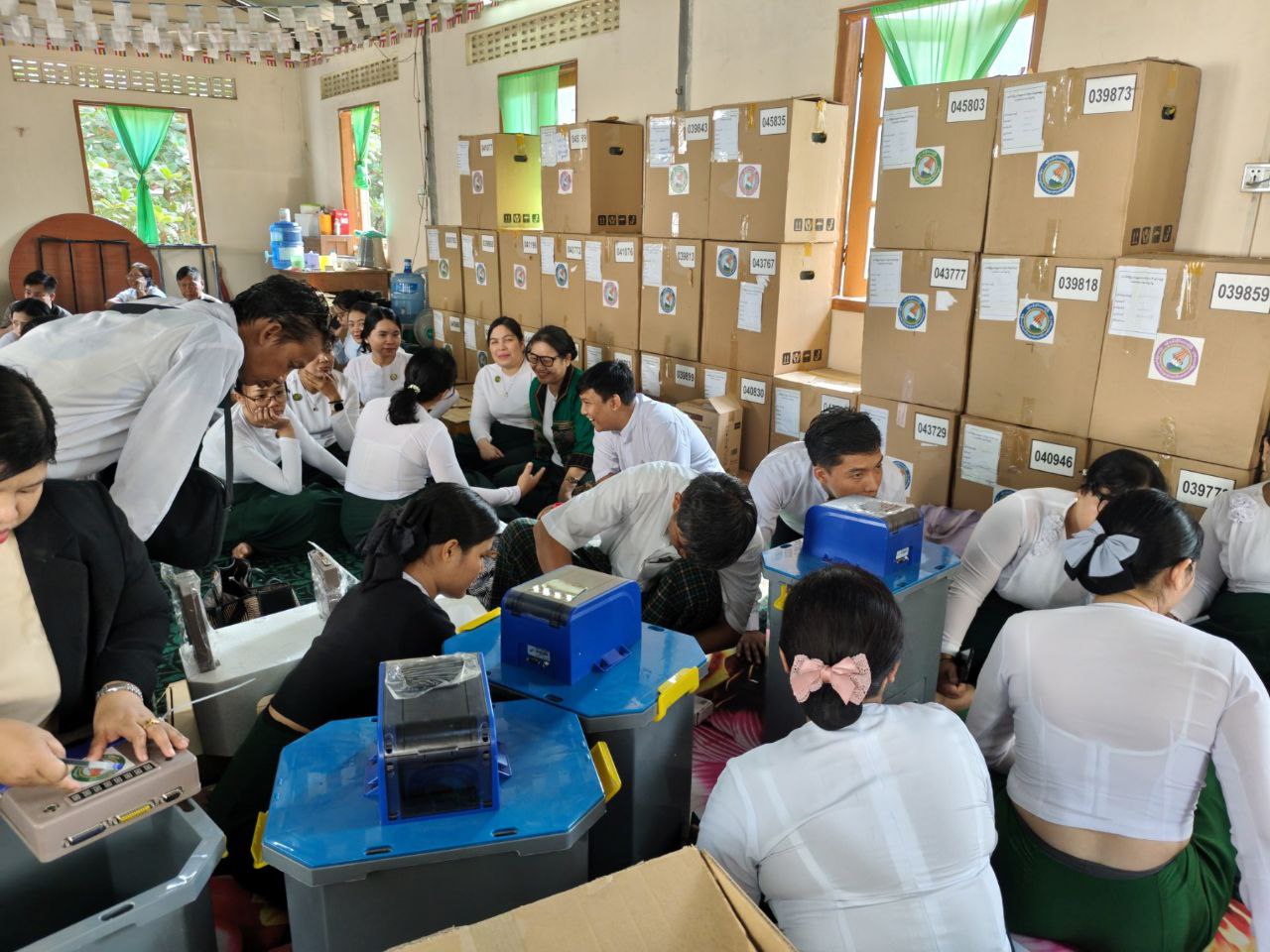 ရန်ကုန်တိုင်းဒေသကြီး၊ ကျောက်တံတားခရိုင်၊ ဒဂုံမြို့နယ်တွင် ယမန်နေ့နံနက် ၉ နာရီအချိန်က ရွေးကောက်ပွဲအပိုင်း ၃ ၌ အသုံးပြုမည့် မြန်မာအီလက်ထရောနစ်မဲပေးစက်များအား Installation တင်ခြင်းလုပ်ငန်းများကို ဆောင်ရွက်ခဲ့ကြောင်း သိရသည်။