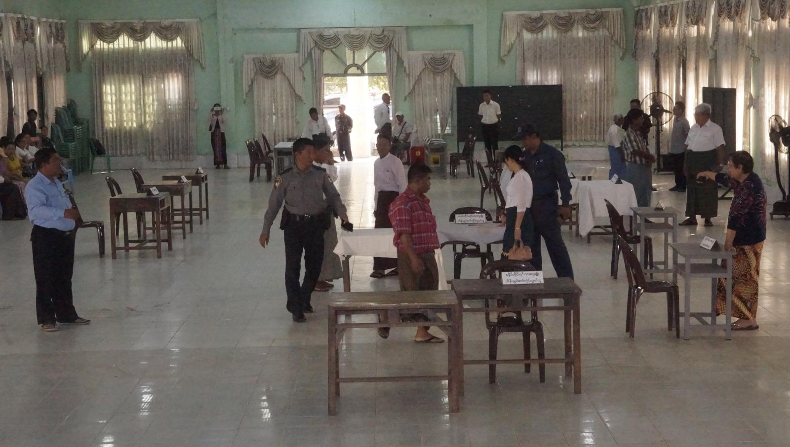 ဒဂုံမြို့နယ် အမှတ် (၂) အခြေခံပညာအထက်တန်းကျောင်း ဦးဘလွင်ခန်းမ၌ ဖွင့်လှစ်မည့် စံပြမဲရုံ ၂ တွင် မြို့နယ်စီမံခန့်ခွဲရေးနှင့် အုပ်ချုပ်ရေးကော်မတီအတွင်းရေးမှူး ရဲမှူးမျိုးဝင်းက မဲရုံခင်းကျင်းမှု ပုံစံများအား စနစ်တကျဆောင်ရွက်ထားရှိနိုင်ရေးဌာနဆိုင်ရာ တာဝန်ရှိသူများအား သရုပ်ပြရှင်းလင်းဆွေးနွေးခဲ့ကြောင်း သိရသည်။