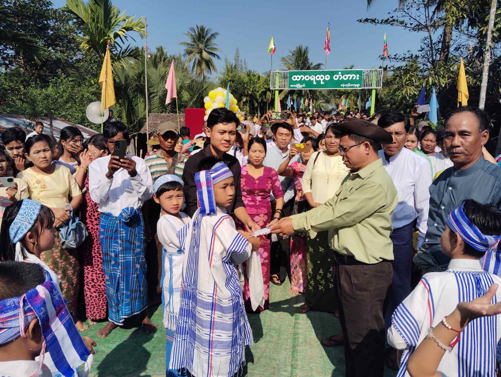 အဆိုပါ အခမ်းအနားတွင် တံတားဖြစ်မြောက်ရေး ဦးဆောင်ဆရာတော် ဘဒ္ဒန္တတိက္ခဓမ္မ၊ မြို့နယ်စီမံခန့်ခွဲရေးနှင့် အုပ်ချုပ်ရေးကော်မတီဥက္ကဋ္ဌ ဦးမြသိန်းမောင်၊ မြို့နယ်စီမံကိန်းရေးဆွဲရေးဦးစီးဌာန၊ လက်ထောက်ညွှန်ကြားရေးမှူး ဒေါ်သန့်စင်လှိုင်တို့က ဖဲကြိုးဖြတ်ဖွင့်လှစ်ပေးခဲ့ပြီး ကဗ္ဗည်းမော်ကွန်းအား အမွှေးနံ့သာရည်များ ပက်ဖြန်းပေးခဲ့သည်။ ထို့နောက် တံတားဖြစ်မြောက်ရေး ပါဝင်လှူဒါန်းပေးခဲ့သည့် အလှူရှင်များအား ဂုဏ်ပြုမှတ်တမ်းများ ပေးအပ်ချီးမြှင့်ခဲ့ပြီး ဖွင့်ပွဲအခမ်းအနားသို့ တက်ရောက်လာသည့် ဖျော်ဖြေရေးအဖွဲ့များအား ဂုဏ်ပြုဆုများ ပေးအပ်ချီးမြှင့်ခဲ့ကြောင်း သိရသည်။