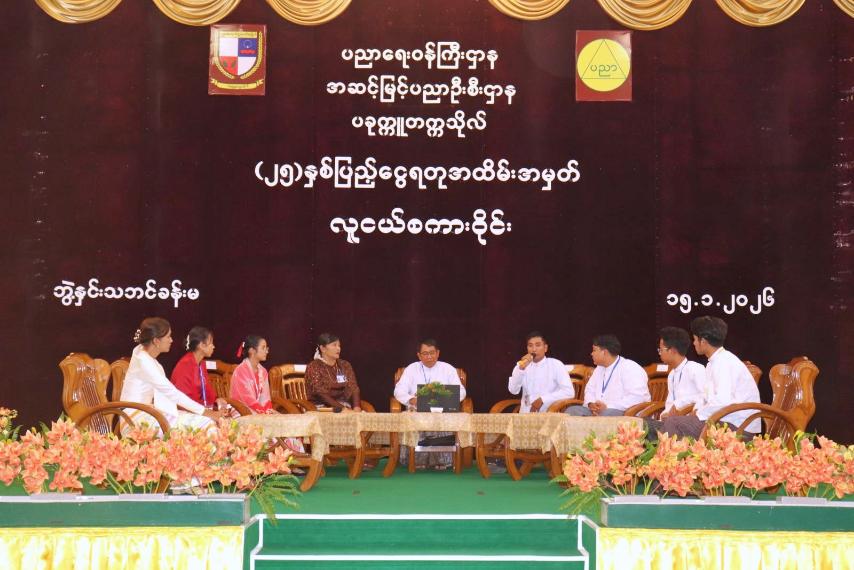ဆက်လက်၍ လူငယ်စကားဝိုင်းကျင်းပရာ ပခုက္ကူတက္ကသိုလ် ပထဝီဝင်ဌာနမှ ပါမောက္ခ ဒေါက်တာ တင်မောင်လွင်နှင့် သမိုင်းဌာနမှ တွဲဖက်ပါမောက္ခ ဒေါက်တာအောင်အောင်လှတို့က ဦးဆောင်ဆွေးနွေးသူအဖြစ် ပါဝင်ဆောင်ရွက်ကြပြီး ဘူမိဗေဒ ဌာနမှ မဟာသိပ္ပံ(ဒုတိယနှစ်)ကျောင်းသား မောင်ကျော်ဆန်းလွင်၊ သင်္ချာဌာနမှ မဟာသိပ္ပံ(ဒုတိယနှစ်)ကျောင်းသူ မဖြူစင်သက်၊ သမိုင်းဌာနမှ ဂုဏ်ထူးတန်း(တတိယနှစ်)ကျောင်းသူ ဟန်နီဝင်းထွန်း၊ အင်္ဂလိပ်စာဌာနမှ ဂုဏ်ထူးတန်း (ဒုတိယနှစ်)ကျောင်းသား မောင်ကျော်ဆန်းလင်း၊ ရုက္ခဗေဒဌာနမှ ဂုဏ်ထူးတန်း (ဒုတိယနှစ်)ကျောင်းသူ မဇင်မာဝင်း၊ ဓာတုဗေဒဌာနမှ စတုတ္ထနှစ် ကျောင်းသား မောင်သူရဖြိုးလွင်၊ ရူပဗေဒဌာနမှ ပထမနှစ်ကျောင်းသား မင်းသန့်နိုင်တို့က “ရာသီဥတုပြောင်းလဲမှုများကြောင့် ဖြစ်ပေါ်လာသော စိန်ခေါ်မှုများဆိုင်ရာ အမျိုး သားအကျိုးစီးပွားများနှင့် ခိုင်မာသောပူးပေါင်းဆောင်ရွက်မှု ” ခေါင်းစဉ်ဖြင့် ကဏ္ဍ အလိုက်ဆွေးနွေးကြသည်။
