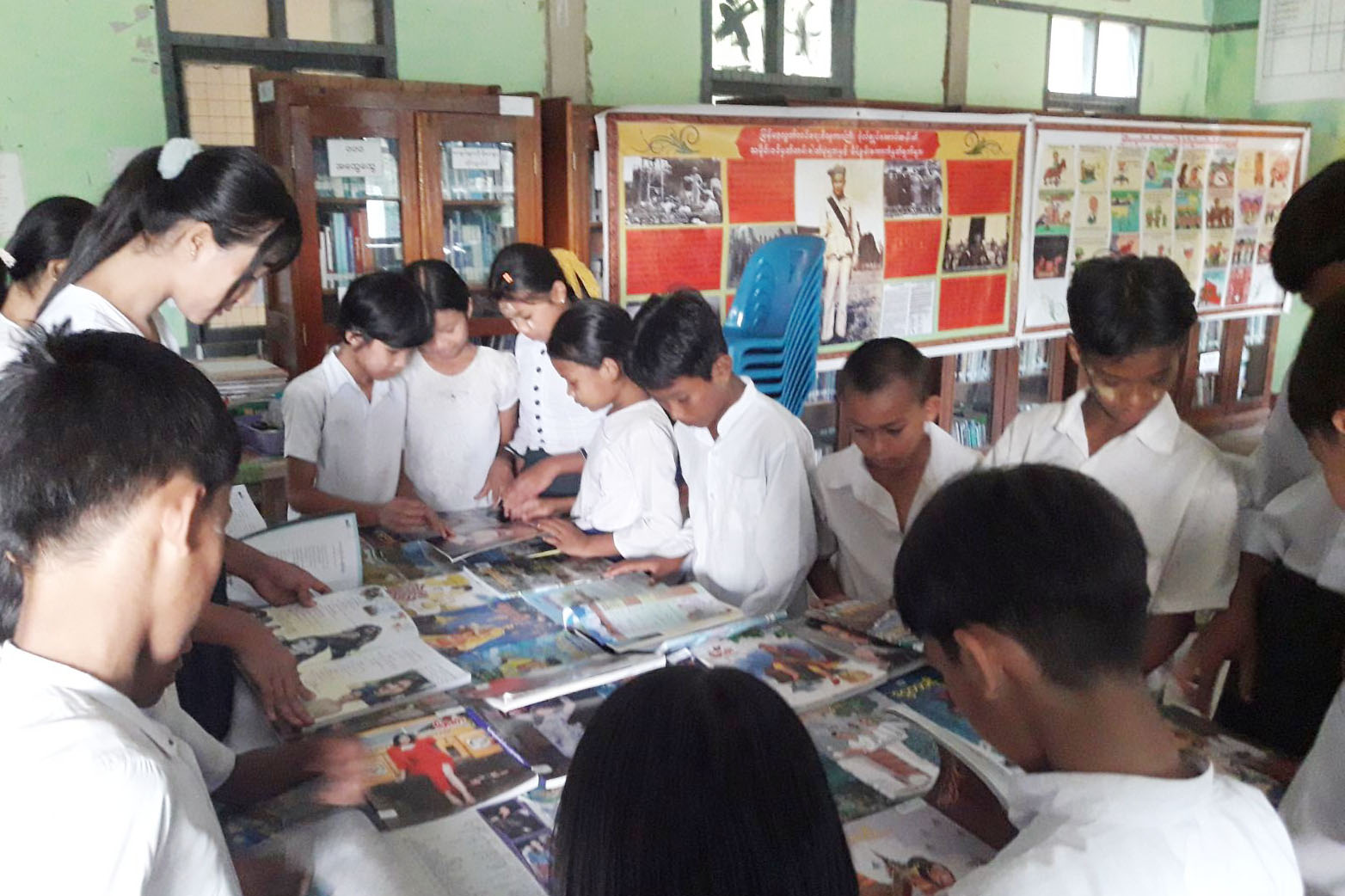 ထို့နောက် ဗိုလ်ချုပ်အောင်ဆန်း၏ အတ္ထုပ္ပတ္တိ၊ သမိုင်းဝင်မှတ်တမ်းဓာတ်ပုံများနှင့် မိန့်ခွန်းကောက်နုတ်ချက်များ၊ နံရံကပ်စာစောင်များ၊ စာအုပ်/ စာအုပ်စောင်များနှင့် အသိပညာပေးနံရံကပ်ဘုတ်များပြသရာ ကျောင်းသား/ သူများက လေ့လာကြည့်ရှုခဲ့ကြောင်းသိရသည်။