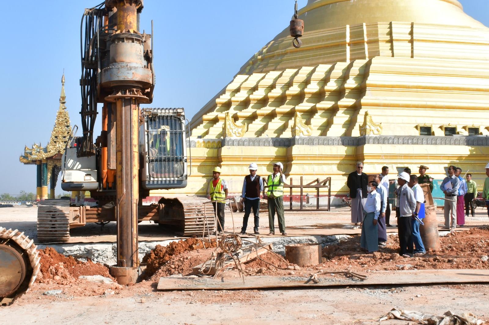 ဦးစွာ နေပြည်တော်ကောင်စီဥက္ကဋ္ဌ ဦးသန်းထွန်းဦးသည် ရင်ပြင်တော်၊ ပစ္စယာနှင့် ပရိဝုဏ်များ ထိခိုက်ပျက်စီးမှုနှင့် ပြုပြင်မွမ်းမံရေးလုပ်ငန်းများ ဆောင်ရွက်နေမှု အခြေအနေများ၊ Cement grouting ဆောင်ရွက်နေမှုများ၊ Soil stabilization ဆောင်ရွက်နေမှုများ၊ Backhoe breaker ဖြင့် မူလရင်ပြင်တော် ကြမ်းခင်းအား တူးထုတ်ပြင်ဆင်နေမှု အခြေအနေများ၊ Bored pile (600mm 60'အနက်) တူးစက်များဖြင့် မြေကျွင်းတူးခြင်းလုပ်ငန်း ဆောင်ရွက်နေမှုအခြေအနေများ၊ စေတီတော်လိုဏ်အတွင်း ကွန်ကရစ်ကြမ်းခင်းအောက်ခြေရှိမြေသားများနိမ့်ကျမှု ဖြစ်ပေါ်ခဲ့ပြီး စေတီတော်ပန်းတည်ခုံပတ်လည်ရှိ အုတ်ရိုးများ ကွဲအက်မှုများမှ Void Filling လုပ်ငန်းဆောင်ရွက်နေမှုအခြေအနေများကို ကြည့်ရှုစစ်ဆေးရာ တာဝန်ရှိသူများမှ တင်ပြချက်များအပေါ် နေပြည်တော်ကောင်စီဥက္ကဋ္ဌက လုပ်ငန်းများ အမြန်ဆုံးပြီးစီးအောင် ဆောင်ရွက်ရေး၊ သတ်မှတ်စံချိန်စံညွှန်းများနှင့်အညီ ရေရှည်ခိုင်ခံ့မှုရှိအောင် ဆောင်ရွက်ရေး၊ နည်းပညာပိုင်းဆိုင်ရာ ပြုပြင်မွမ်းမံရေးလုပ်ငန်းများကို စနစ်တကျစီမံဆောင်ရွက်နိုင်ရေး၊ စေတီတော်လိုဏ်အတွင်း စကျင်ကျောက်ပန်းချီများ ပြုပြင်ခြင်း၊ ကျောက်စိမ်းပြားများ ပြုပြင်ခြင်းလုပ်ငန်းနှင့်ကျန်ရှိသည့်အပိုင်းကို စံချိန်စံညွှန်းနှင့်အညီ ဆောင်ရွက်ရေး တို့ကိုမှာကြားပြီး လုပ်ငန်းလိုအပ်ချက်များကို ပေါင်းစပ်ဆောင်ရွက်ပေးသည်။