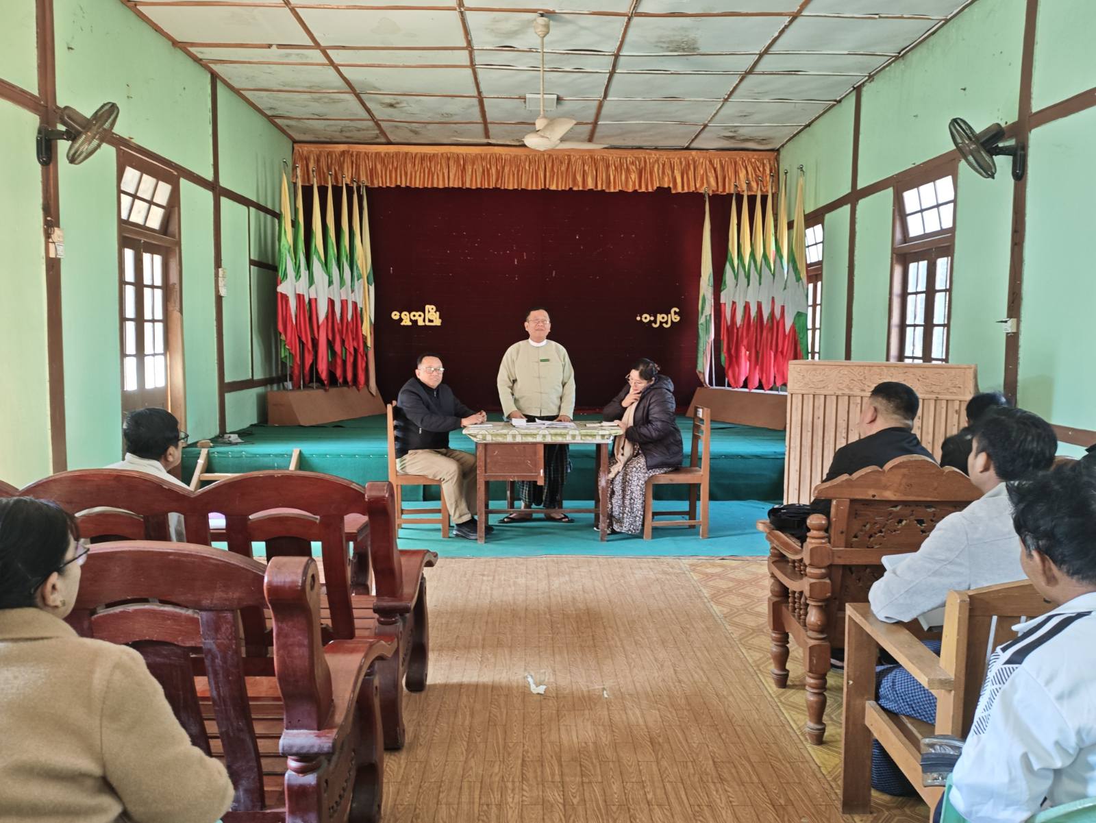 ကချင်ပြည်နယ်၊ ဗန်းမော်ခရိုင်၊ ရွှေကူမြို့နယ်တွင် ၂၀၂၆ ခုနှစ် ဇန်နဝါရီလ ၂၅ ရက်နေ့တွင် ကျင်းပပြုလုပ်မည့် ပါတီစုံဒီမိုကရေစီအထွေထွေရွေးကောက်ပွဲ အပိုင်း (၃) အောင်မြင်စွာကျင်းပ ပြုလုပ်နိုင်ရေးအတွက် လုပ်ငန်းညှိနှိုင်းအစည်းအဝေးကို ယနေ့နံနက် ၉ နာရီက ရွှေကူမြို့နယ် အထွေထွေအုပ်ချုပ်ရေးဦးစီးဌာန အစည်းအဝေးခန်းမ၌ကျင်းပပြုလုပ်သည်။
