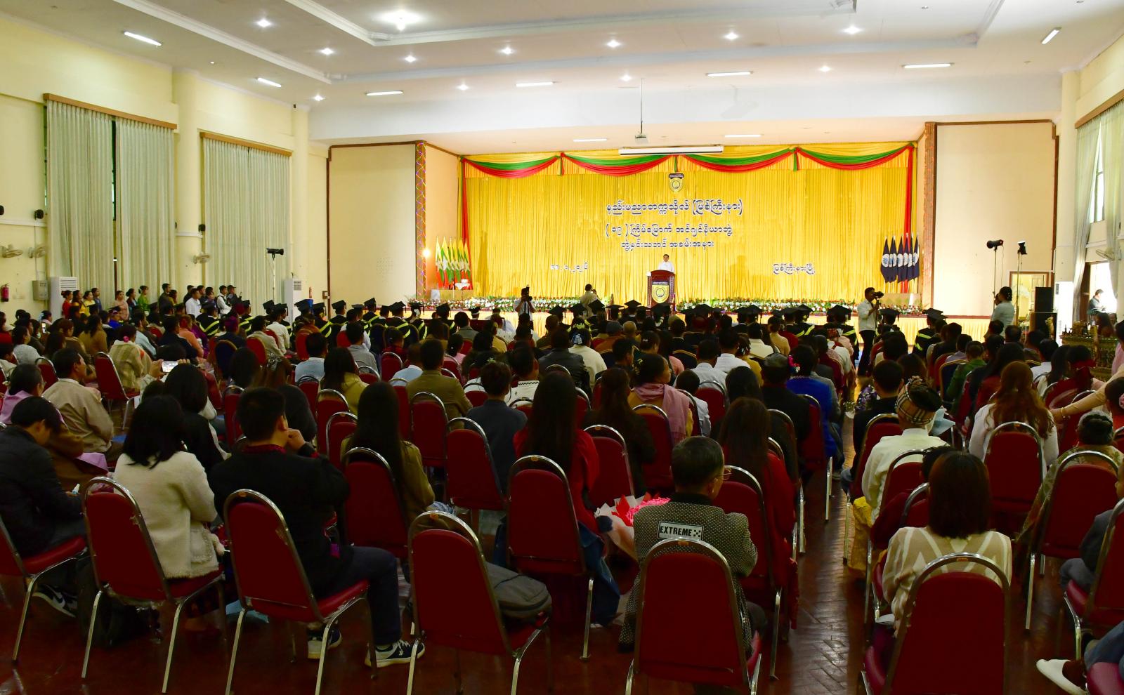 သိပ္ပံနှင့်နည်းပညာဝန်ကြီးဌာန၊ နည်းပညာတက္ကသိုလ်(မြစ်ကြီးနား)၏ (၁၉)ကြိမ်မြောက်အင်ဂျင်နီယာဘွဲ့ ဘွဲ့နှင်းသဘင်အပ်နှင်းခြင်းအခမ်းအနားကို Polytechnic University (မြစ်ကြီးနား)၏ ဘွဲ့နှင်းသဘင်ခန်းမ၌ ကျင်းပပြုလုပ်ရာ ပြည်နယ်ဝန်ကြီးချုပ် ဦးခက်ထိန်နန်နှင့် တာဝန်ရှိသူများ တက်ရောက်အားပေးကြသည်။