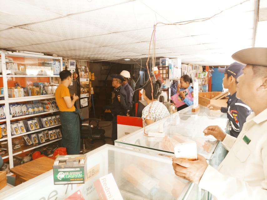 စျေးဆိုင်ခန်းများ မီးဘေးလုံခြုံရေး ဆောင်ရွက်ထားရှိမှု၊ လျှပ်စစ်ကြိုးများ စနစ်တကျသွယ်တန်းထားမှု ရှိ/မရှိ၊ မီးသတ်ဆေးဘူးများ အသုံးပြု၍ရ/မရ၊ Hydrunt ငုတ်များ တပ်ဆင်ထားမှုတို့ကို စစ်ဆေးခဲ့ကြောင်း သိရသည်။
