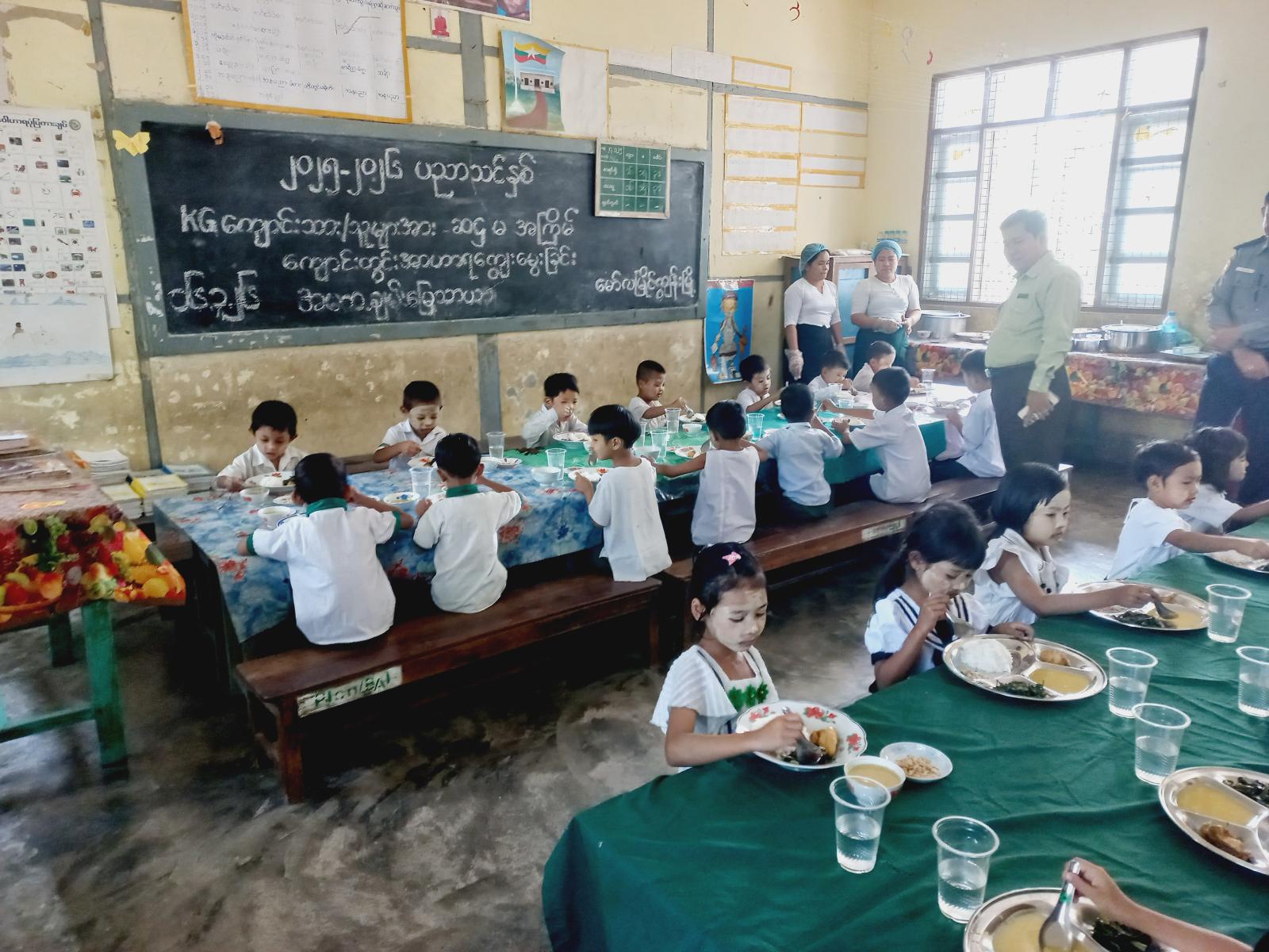 ဧရာဝတီတိုင်းဒေသကြီး၊ လပွတ္တာခရိုင်၊ မော်လမြိုင်ကျွန်းမြို့နယ်၌ ပြည်သူ့ကျန်းမာရေးဦးစီးဌာနနှင့် အခြေခံပညာဦးစီးဌာနတို့ပူးပေါင်း၍ (ဆဌမ)အကြိမ် ကျောင်းတွင်းအာဟာရကျွေးခြင်းကို အေ(၉)လမ်း အ.မ.ကနှင့် ချမ်းမြေ့သာယာ အ.မ.က ကျောင်းတို့၌ ယနေ့နံနက်ပိုင်းက ဆောင်ရွက်သည်။