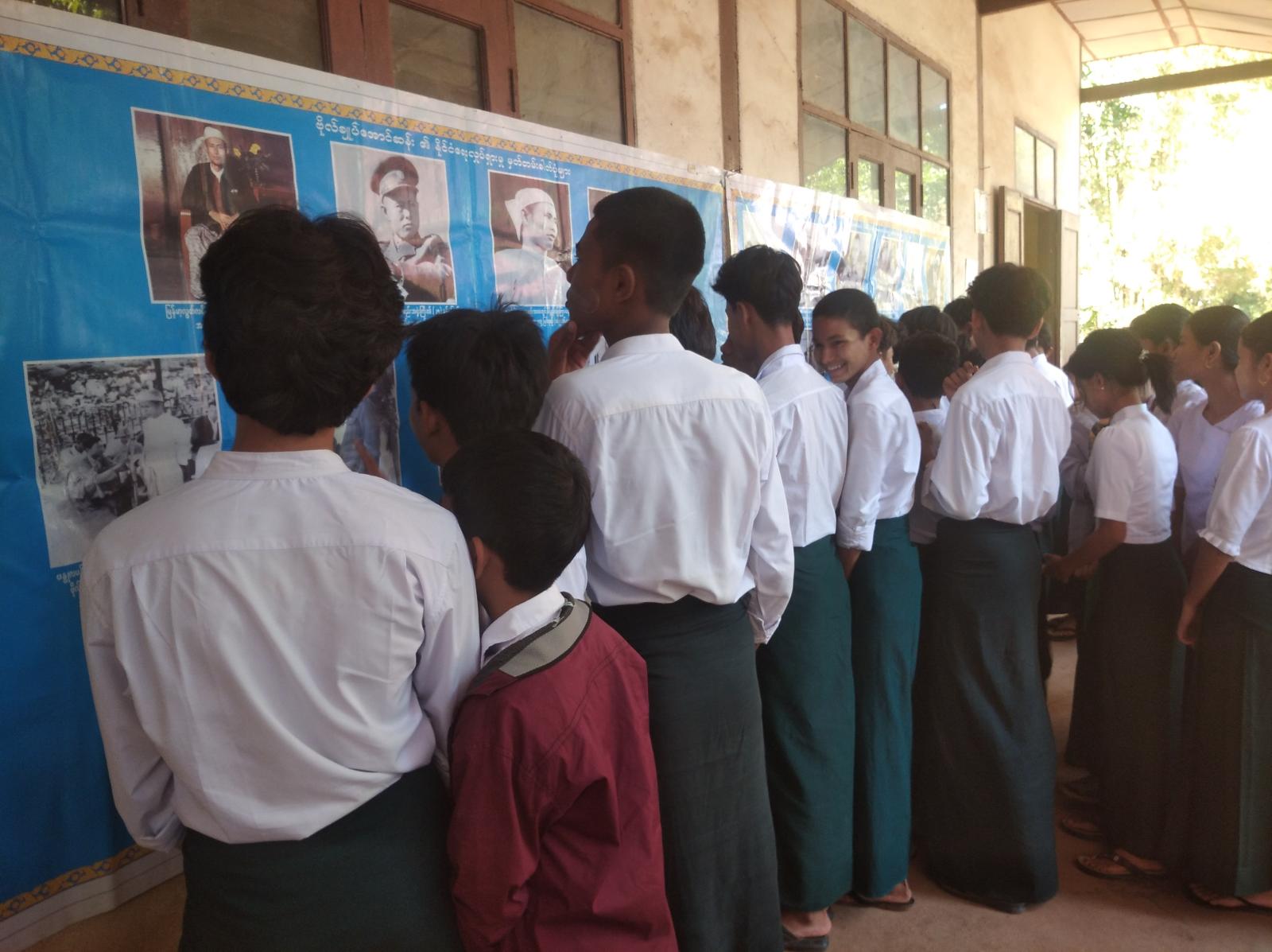 ထို့နောက် ကျောင်းသား၊ ကျောင်းသူများအား အသိပညာ ဗဟုသုတ ရရှိစေရေးအတွက် နယ်လှည့်စာကြည့်တိုက်လှုပ်ရှားမှုအဖြစ် ဒုတိယဦးစီးစီးမှူးဦးမျိုးငြိမ်းနှင့်ဝန်ထမ်းများက နံရံကပ်စာစောင်နှင့်သုတ၊ ရသ စာအုပ်စာစောင်များအားပြသခဲ့ရာ ကျောင်းသား၊ကျောင်းသူများက စိတ်ပါဝင်စားစွာ လေ့လာဖတ်ရှု့ကြကြောင်း သိရသည်။