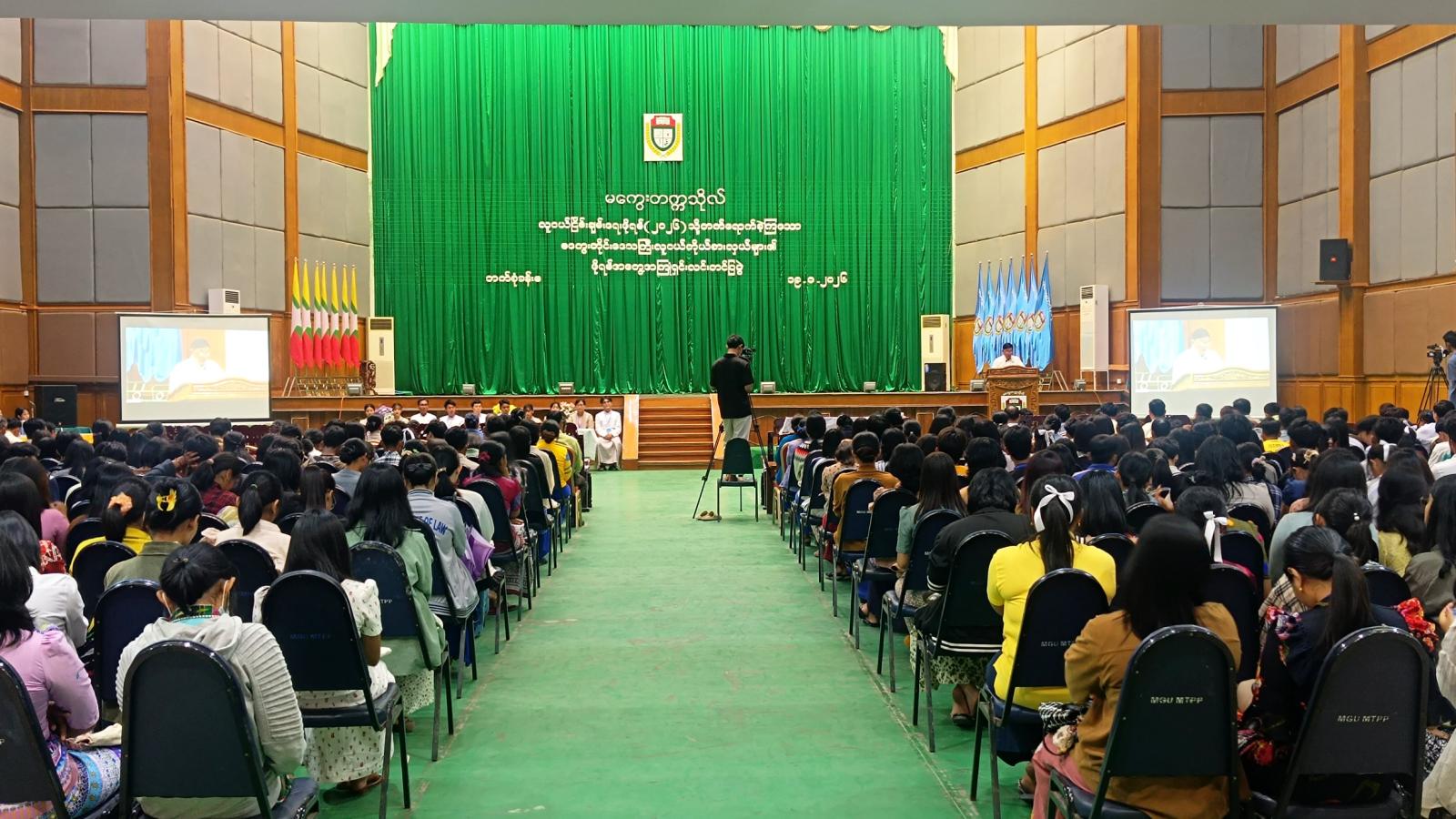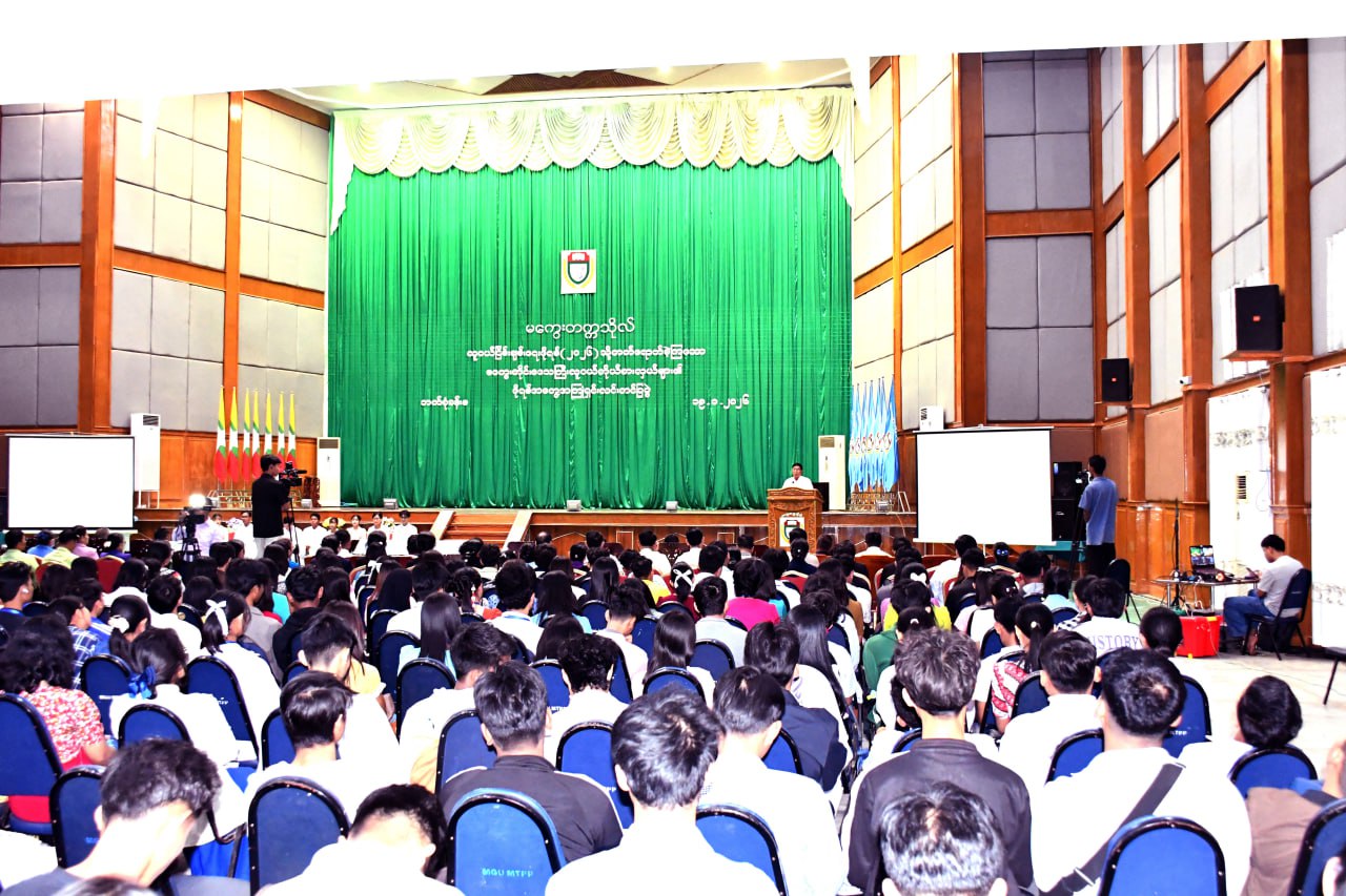 လူငယ်ငြိမ်းချမ်းရေးဖိုရမ်-၂၀၂၆(Youth Peace Forum 2026)သို့ တက်ရောက်ခဲ့ကြသည့် မကွေးတိုင်းဒေသကြီးကိုယ်စားပြု လူငယ်ကိုယ်စားလှယ်များ၏ ဖိုရမ်အတွေ့အကြုံရှင်းလင်းပွဲအခမ်းအနားကို ယမန်နေ့မွန်းလွဲပိုင်းက မကွေးတက္ကသိုလ်ဘက်စုံသုံးခန်းမ၌ ကျင်းပရာ တိုင်းဒေသကြီးဝန်ကြီးချုပ် ဦးတင့်လွင်နှင့် အဖွဲ့ဝင်ဝန်ကြီးများ၊ မကွေးတိုင်းဒေသကြီး လူငယ်ရေးရာကော်မတီအဖွဲ့ဝင်များ၊ တိုင်းဒေသကြီးကိုယ်စားပြု သွားရောက်ကြသည့် လူငယ်ကိုယ်စားလှယ်များနှင့် မကွေးတက္ကသိုလ်မှ ကျောင်းသား၊ ကျောင်းသူများ တက်ရောက်သည်။