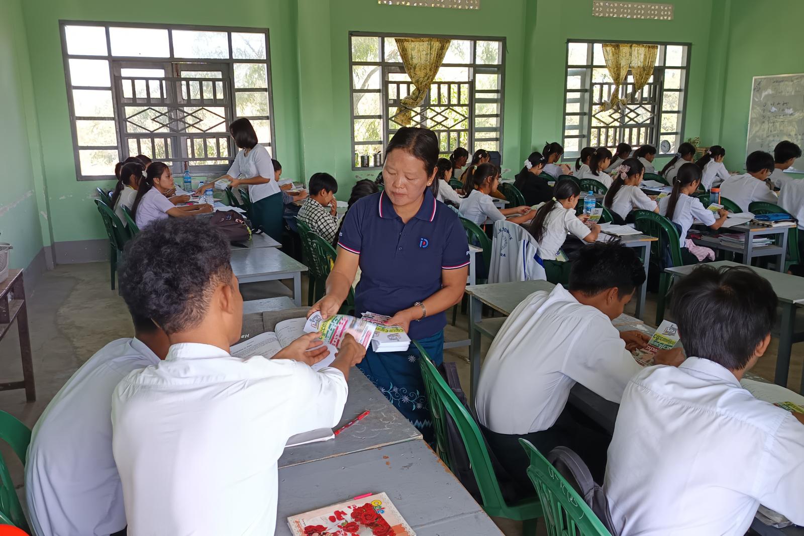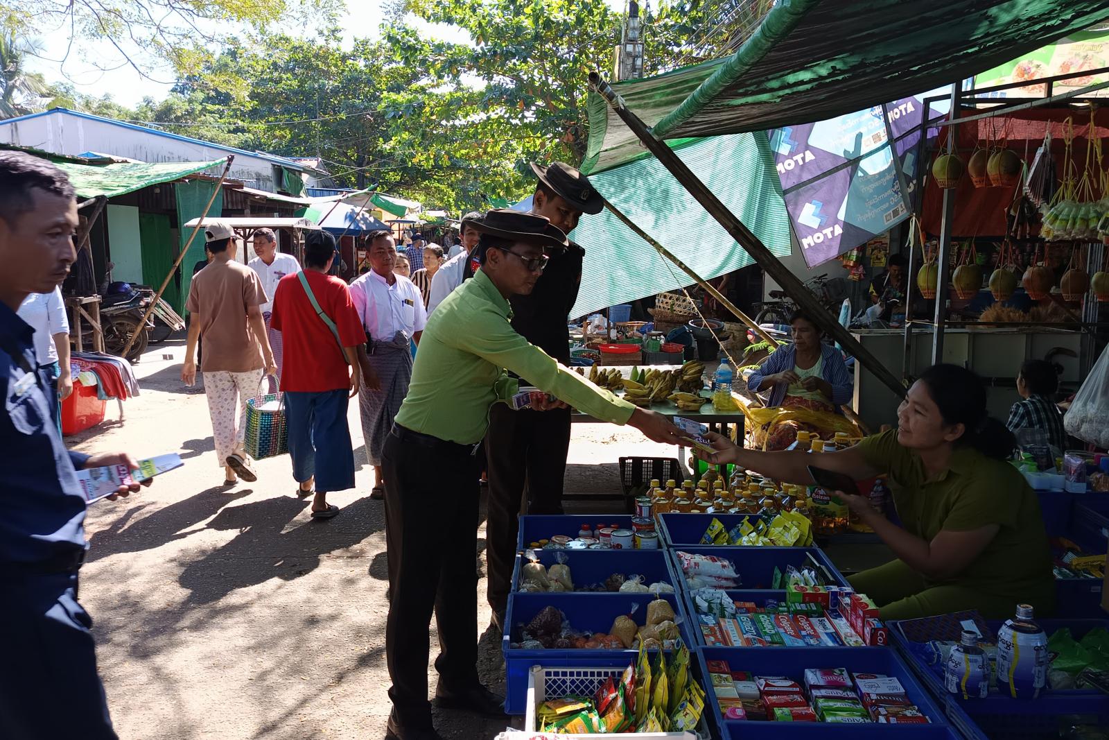 ထိုသို့ ဖြန့်ဝေရာတွင် မြို့နယ်အထွေထွေအုပ်ချုပ်ရေးဦးဌာန၊ ပြန်ကြားရေးနှင့်ပြည်သူ့ဆက်ဆံရေးဦးစီးဌာန မြို့နယ်စည်ပင်သာယာမှ ဝန်ထမ်းများက ရွေးကောက်ပွဲအသိပညာပေးလက်ကမ်းစာစောင်များအား ဖြန့်ဝေပေးခြင်းဖြစ်ပြီး "နိုင်ငံသားတိုင်းမဲပေးပိုင်ခွင့် အခွင့်အရေးပြည့်ဝစွာရရှိစေရေး၊ မဲပေးခြင်းသည် နိုင်ငံသားများမှ အမျိုးသားရေးတာဝန်ထမ်းဆောင်ခြင်းဖြစ်သည့်အတွက်" ဆောင်ရွက်ခြင်းဖြစ်ကြောင်း သိရသည်။