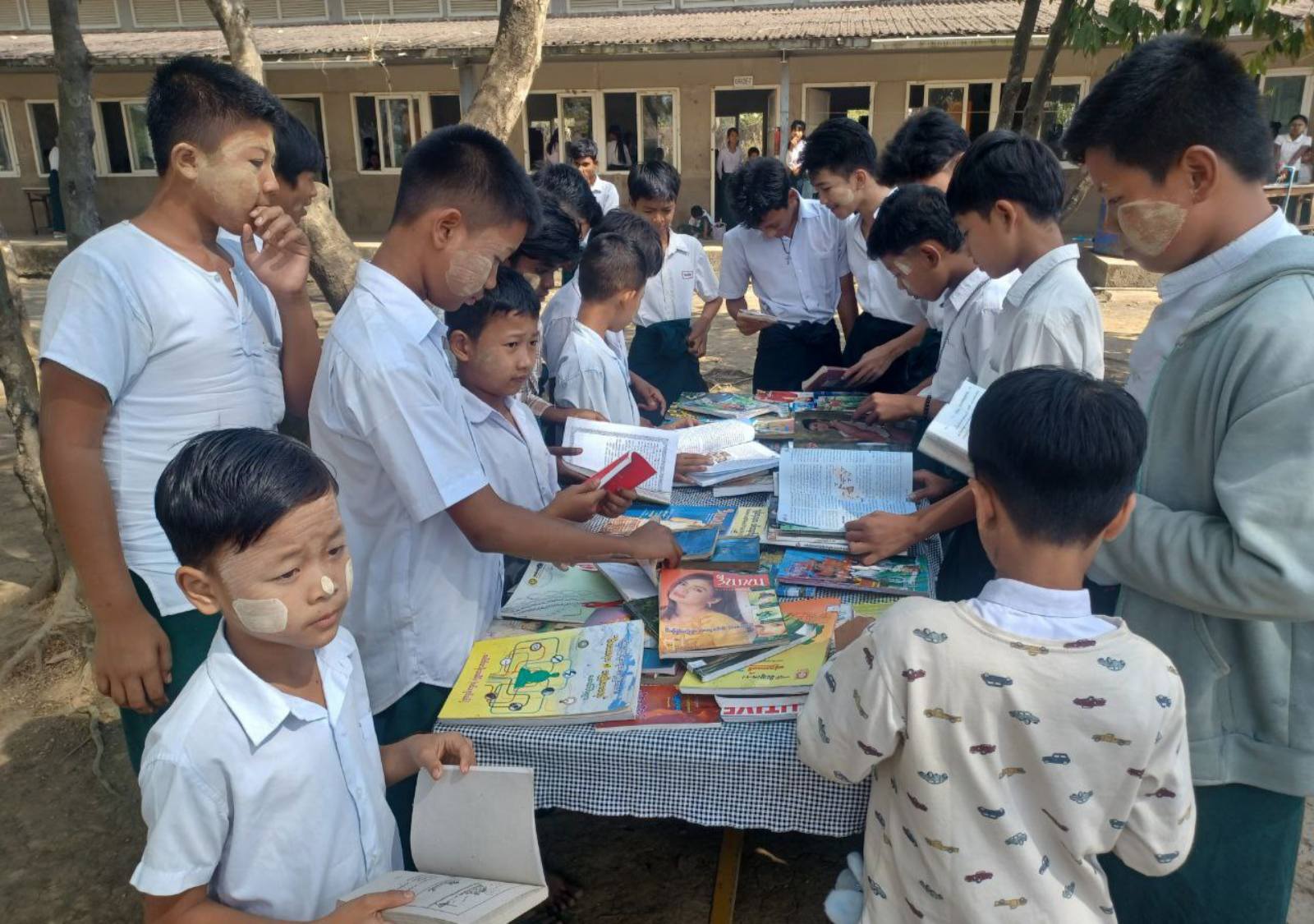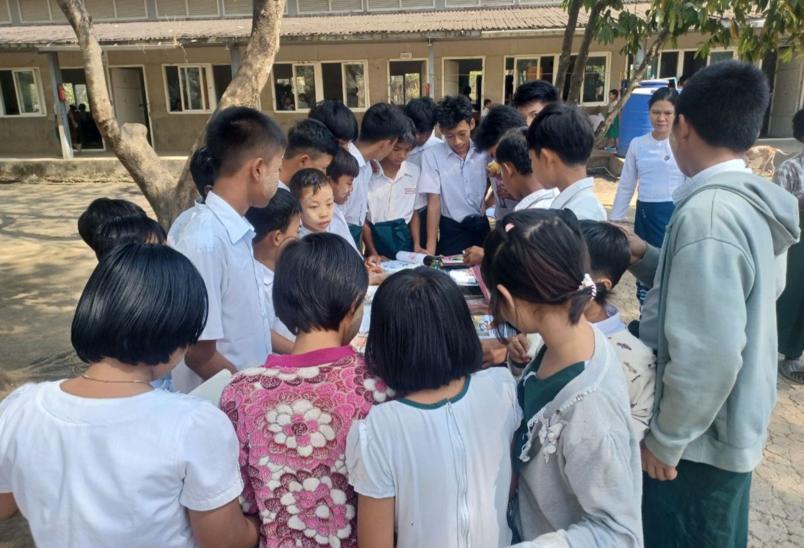 ထို့နောက် ကျောင်းသား/ကျောင်းသူများက ခရိုင်ပြန်ကြားရေးနှင့်ပြည်သူ့ဆက်ဆံရေးဦးစီးဌာန ဝန်ထမ်းများမှ ခင်းကျင်းပြသထားသည့် စာအုပ်စာစောင်များအား စိတ်ဝင်စားစွာ လေ့လာကြည့်ရှုခဲ့ကြကြောင်း သိရသည်။