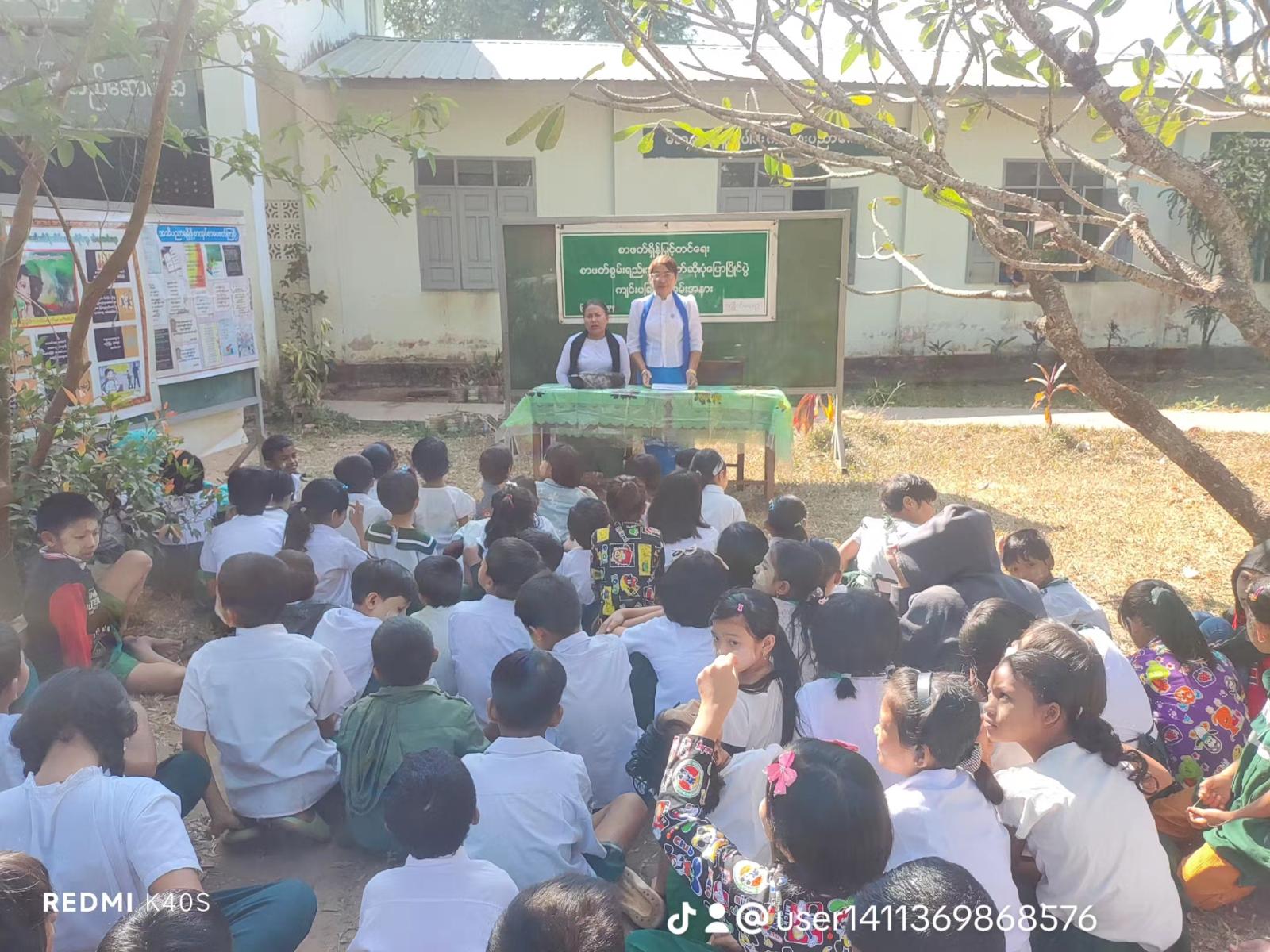 ဦးစွာ အ.မ.က နတ်စမ်းကျောင်းအုပ်ဆရာမကြီး ဒေါ်ငွေဝင်းက အဖွင့်အမှာစကားပြောကြားပြီး ပြန်ကြားရေးနှင့်ပြည်သူ့ဆက်ဆံရေးဦးစီးဌာနမှ ဦးစီးအရာရှိ ဒေါ်ချိုမြတိမြတ်ထွေးက ကလေးအလုပ်သမားပပျောက်ရေးနှင့် မူးယစ်ဆေးဝါးအန္တရာယ်များအကြောင်း အသိပညာပေးဟောပြောခဲ့သည်။