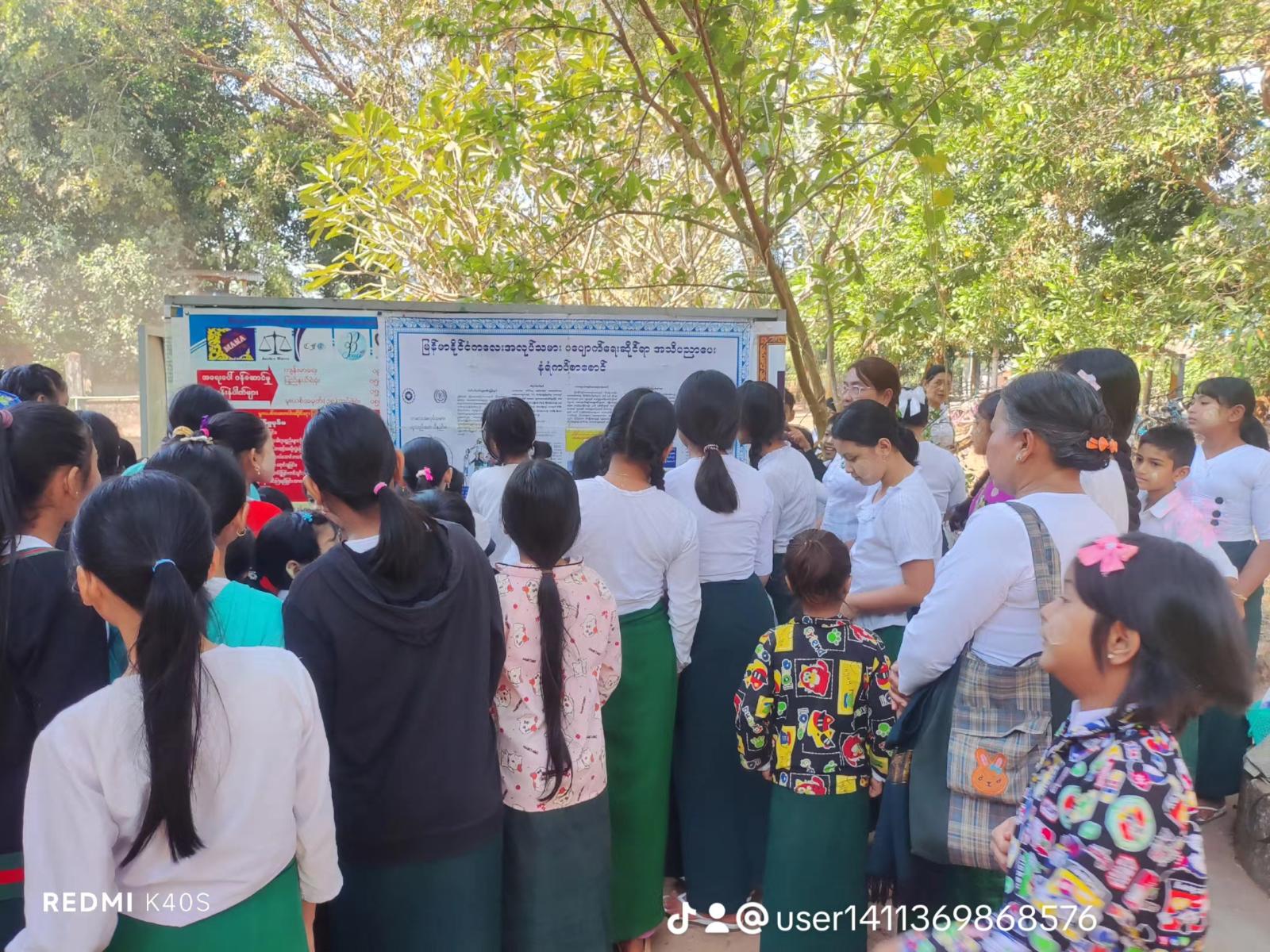 ယင်းနောက် ပြန်ကြားရေးနှင့် ပြည်သူ့ဆက်ဆံရေး ဦးစီးဌာနက ခင်းကျင်းပြသထားသော ကလေးအလုပ်သမားပပျောက်ရေး၊ ကလေးသူငယ်များစစ်မှူထမ်းခြင်းမှ ကာကွယ်တားဆီးရေးနှင့် မူးယစ်ဆေးဝါးအန္တရာယ် ပညာပေးနံရံကပ်စာစောင်များကို ကျောင်းသား၊ ကျောင်းသူများက လေ့လာကြည့်ရှုခဲ့ကြောင်း သိရသည်။