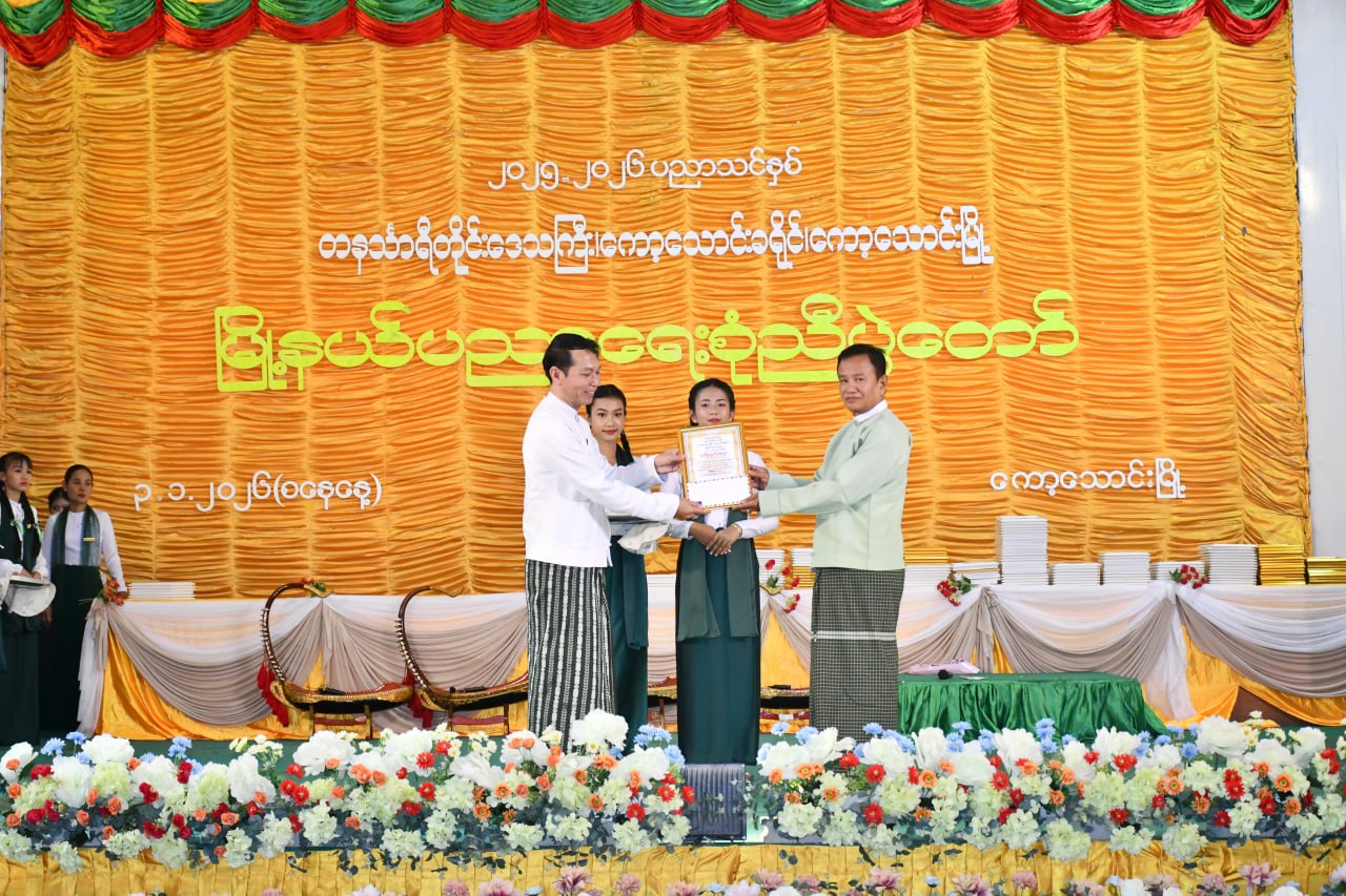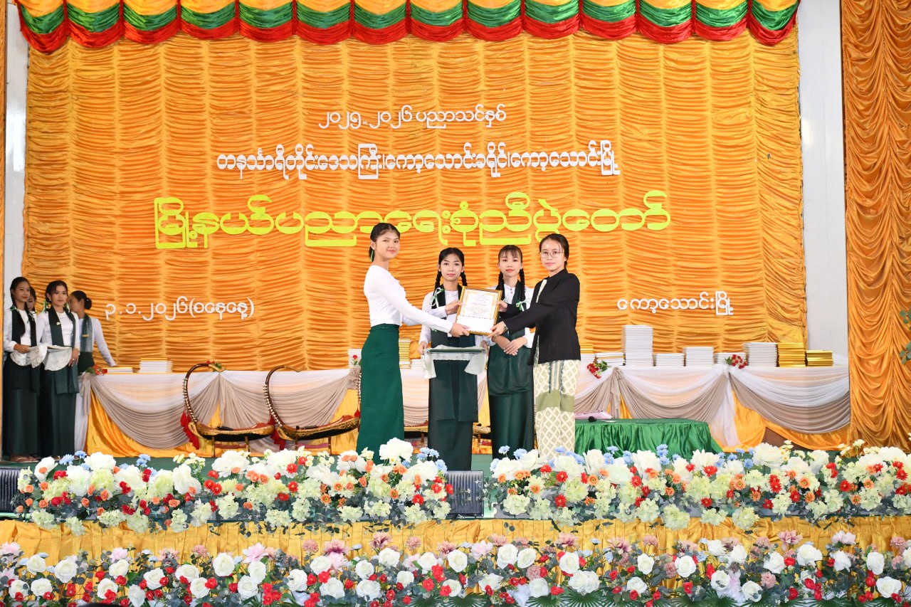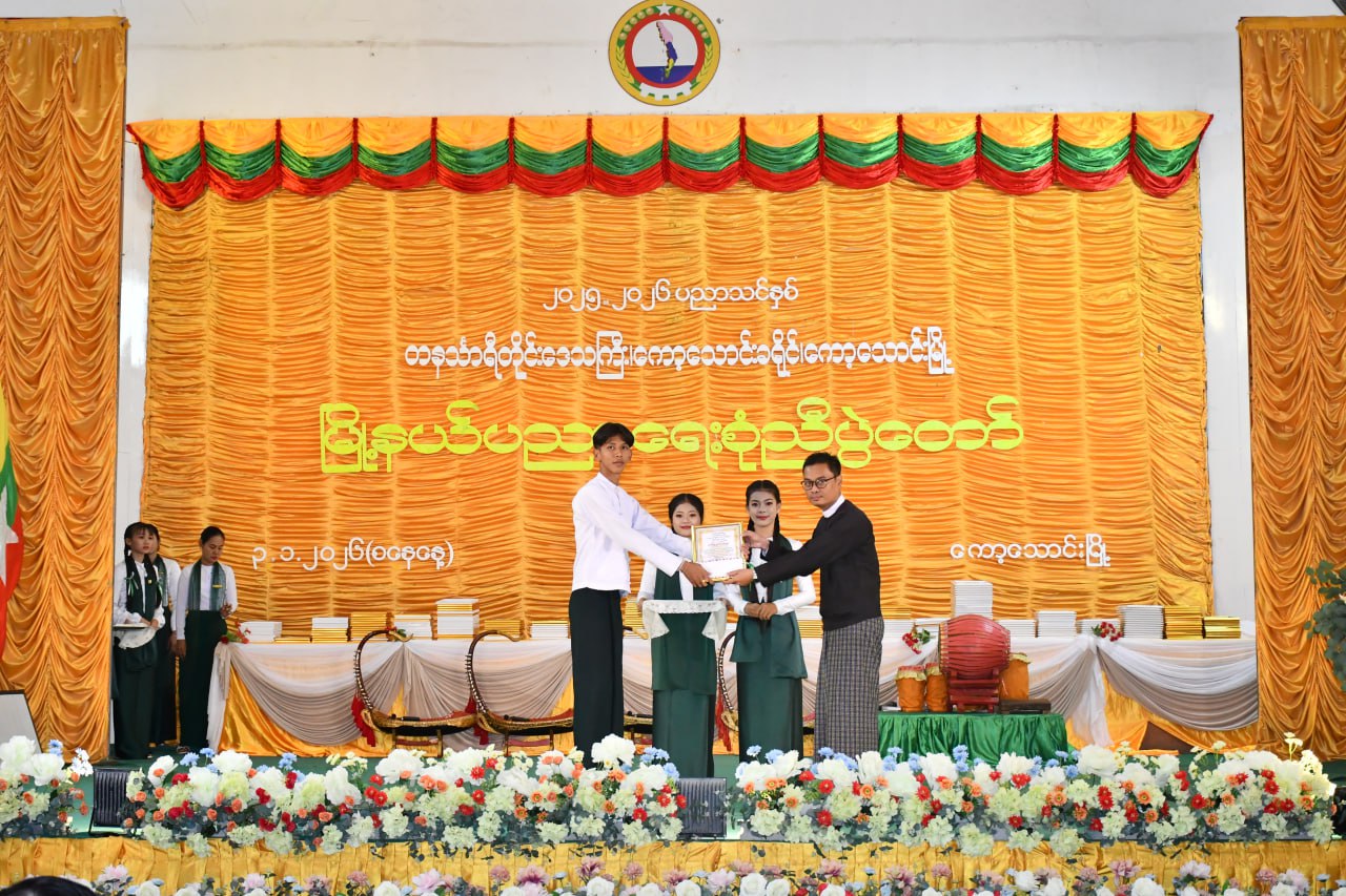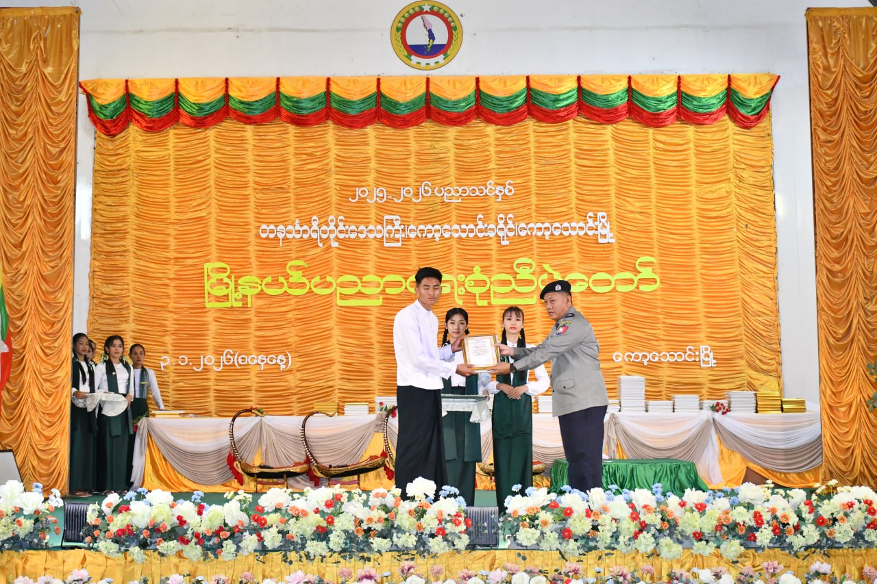 တနင်္သာရီတိုင်းဒေသကြီး၊ ကော့သောင်းခရိုင်၊ ကော့သောင်းမြို့တွင် ၂၀၂၅-၂၀၂၆ ပညာသင်နှစ် မြို့နယ်ပညာရေးစုံညီပွဲတော်ကို ယနေ့နံနက်ပိုင်းက ကော့သောင်းမြို့မဉ္ဇူသကခန်းမတွင် ကျင်းပရာ အဆိုပါအခမ်းအနားသို့ စစ်ဗျူဟာအဖွဲ့အခြေချ(ကော့သောင်း)မှ စစ်ဗျူဟာမှူး ဗိုလ်မှူးကြီး အောင်ကိုလတ်၊ ခရိုင်နှင့်စီမံခန့်ခွဲရေးနှင့် အုပ်ချုပ်ရေးကော်မတီအဖွဲ့ဝင်များ၊ မြို့နယ်စီမံခန့်ခွဲရေးနှင့်အုပ်ချုပ်ရေးကော်မတီဥက္ကဋ္ဌနှင့်အဖွဲ့ဝင်များ၊ ခရိုင်နှင့်မြို့နယ်အဆင့် ဌာနဆိုင်ရာများ၊ ဆရာ၊ ဆရာမများနှင့် ထူးချွန်ကျောင်းသား၊ ကျောင်းသူများ၊ ကျောင်းသား မိဘများ တက်ရောက်ခဲ့ကြသည်။