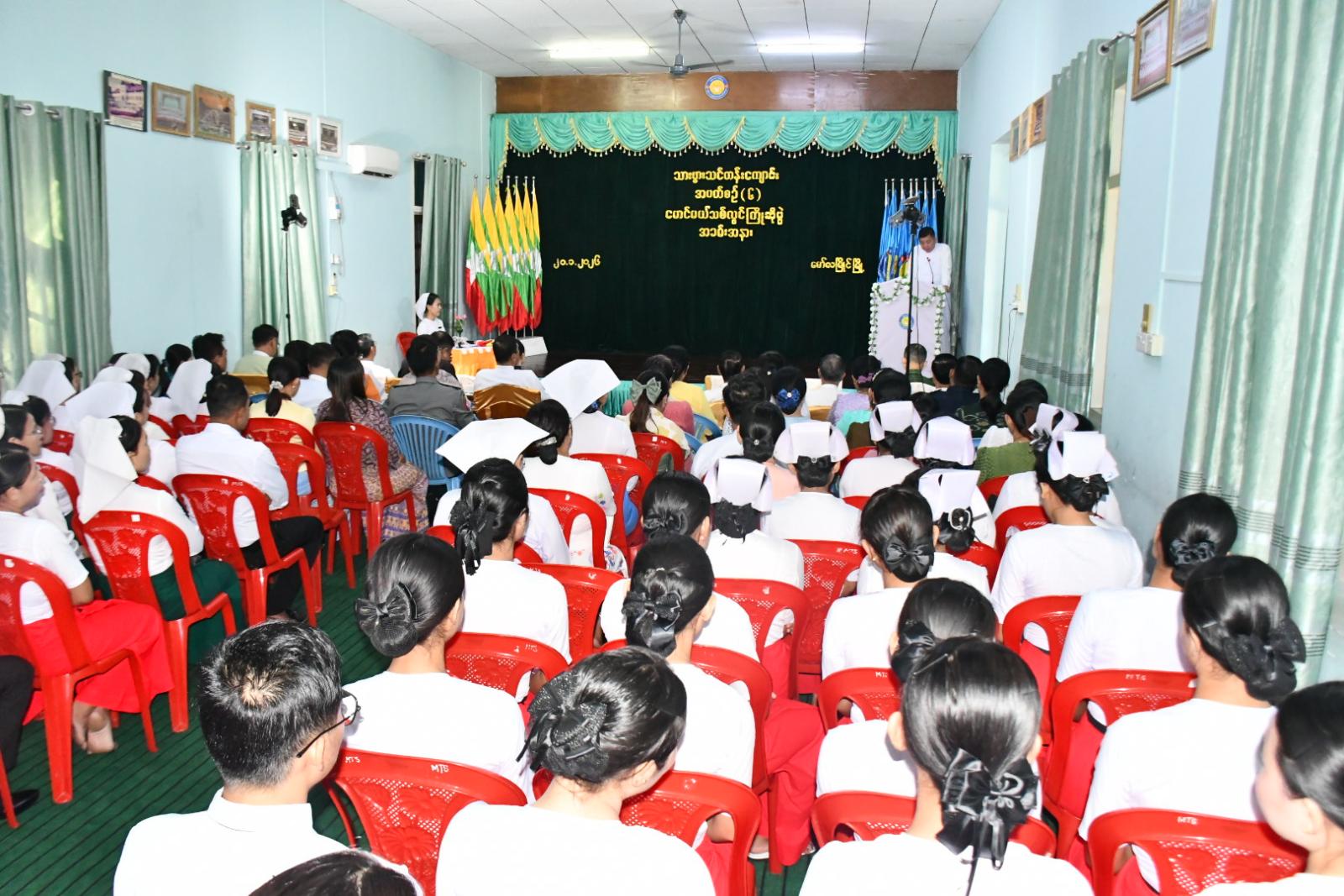 အဆိုပါ အပတ်စဉ် (၆) ပထမနှစ်သူနာပြု သားဖွားသင်တန်းကို သင်တန်းသား၊ သင်တန်းသူ (၄၆) ဦး၊ သင်တန်းကာလ (၃) နှစ်ဖြင့် သင်ကြားပို့ချသွားမည်ဖြစ်ကြောင်း သိရှိရသည်။
