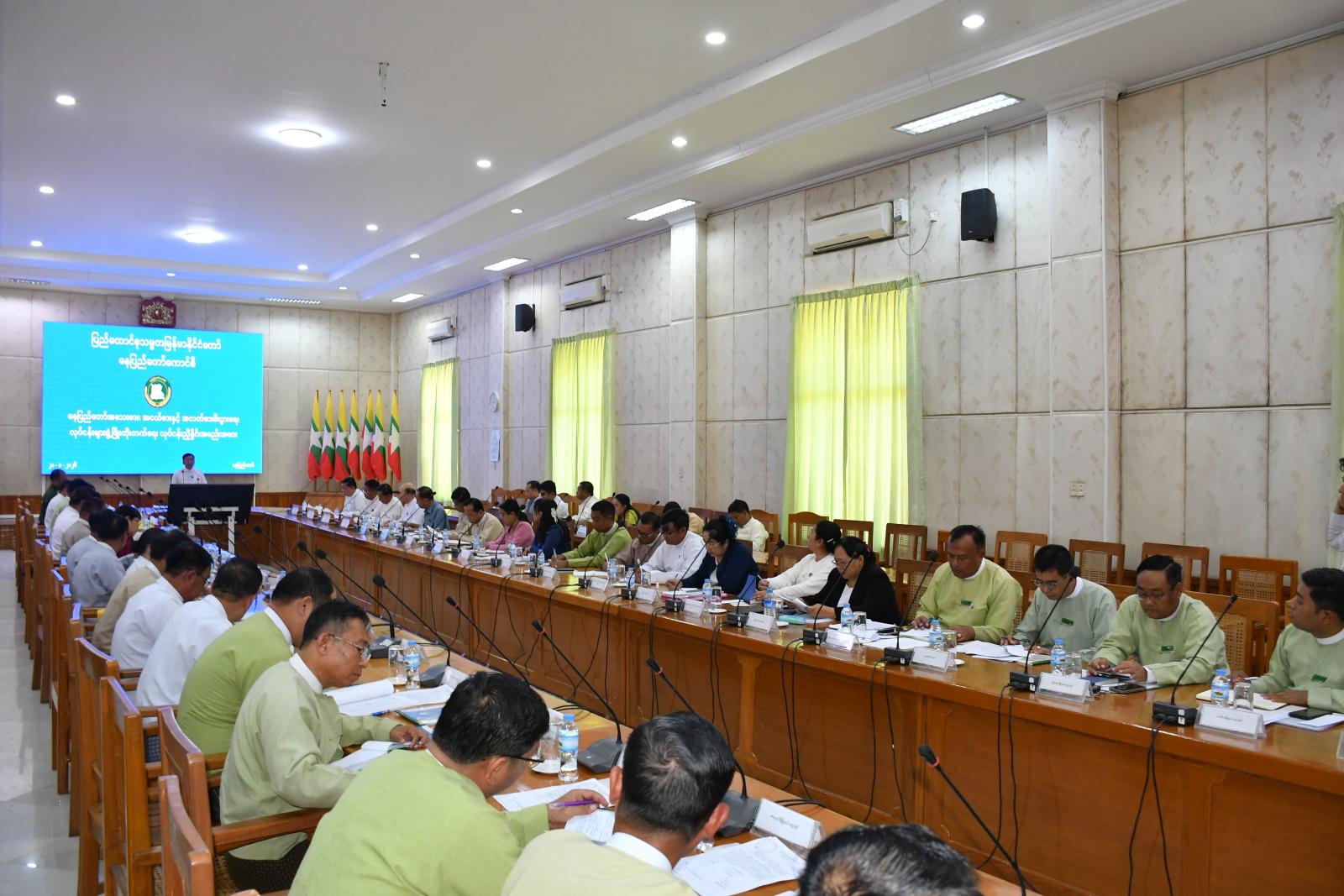 ဦးစွာ နေပြည်တော်ကောင်စီဥက္ကဋ္ဌ ဦးသန်းထွန်းဦးက အဖွင့်အမှာစကားပြောကြားရာ ၂၀၂၅-၂၀၂၆ ဘဏ္ဍာရေးနှစ် နောက်ဆုံး(၃)လပတ်သို့ ရောက်ရှိလာချိန်၌ အေဂျင်စီအဖွဲ့ဝင်ဌာနများ၏ စီမံကိန်းလျာထားချက်များအား ဘဏ္ဍာနှစ်နောက်ဆုံး(၃)လပတ်အတွင်း ပြီးမြောက်အောင် အကောင်အထည်ဖော်ဆောင်ရွက်ရာတွင် ဌာနအလိုက်လျာထားသည့် စီမံကိန်းများ၊ မှတ်ပုံတင်လိုင်စင်များ၊ ပြည့်မီကျော်လွန်အောင် အကောင်အထည်ဖော်ဆောင်ရွက်ကြရန်နှင့် MSME လုပ်ငန်းများ ဖွံ့ဖြိုးတိုးတက်ရန်အတွက် ဌာနများမှ တိုက်ရိုက်သို့မဟုတ် သွယ်ဝိုက်ပြီး အကောင်အထည်ဖော်ဆောင်ရွက်ချက်များအား တင်ပြဆွေးနွေးကြရန်လိုကြောင်း၊ မြို့နယ်အလိုက် MSME ထုတ်ကုန်ပြပွဲနှင့် ပြပွဲကျင်းပခြင်းကြောင့် တစ်ခါသုံးအင်ဖက်ဖြင့် ပြုလုပ်သော လူသုံးကုန်ပစ္စည်းများ၊ စွန့်ပစ်ပစ္စည်း ဖြစ်သော လွှစာမှုန့်၊ ဖွဲဖြင့်ပြုလုပ်သော လမ်းခင်းအုတ်လုပ်ငန်း၊ ထန်းရွက်နှင့်ပြုလုပ်သော လက်မှုလုပ်ငန်းများ၊ မြန်မာ့ရိုးရာအိုးစည်ထုတ်လုပ်သည့်လုပ်ငန်း စသောတီထွင်ဆန်းသစ်မှု လုပ်ငန်းများ၊ လုပ်ငန်းသစ်များဖော်ထုတ်နိုင်ခဲ့သလို အခြားမြို့နယ်များမှာလည်း မြို့နယ်အတွင်းရှိ မှတ်ပုံတင်ထားခြင်းမရှိသော MSME လုပ်ငန်းများနှင့် မှတ်ပုံတင် ထားပြီးဖြစ်သော MSMEလုပ်ငန်းများအား ဆွဲဆောင်စည်းရုံး၍ ပြပွဲ၊ ပြိုင်ပွဲများတွင် ယခုထက်ပိုမို ပါဝင်လာနိုင်အောင် ဆွဲဆောင်စည်းရုံးသွားကြဖို့ ပြောကြားလိုကြောင်း၊ မြို့နယ်အလိုက် ကျင်းပခဲ့သည့် MSME ထုတ်ကုန်ပြပွဲ၊ ပြိုင်ပွဲများ၏ အားနည်းချက်၊ အားသာချက်၊ စိန်ခေါ်မှုတို့ကိုသုံးသပ်၍ ၂၀၂၆ ခုနှစ်၊ ဖေဖော်ဝါရီလတွင် ကျင်းပမည့် (၇၉) နှစ်မြောက်၊ ပြည်ထောင်စုနေ့အထိမ်းအမှတ်၊ ပြည်ထောင်စုအဆင့် MSME ထုတ်ကုန်ပြပွဲနှင့် အထူးဈေးရောင်းပွဲတော်တွင် နေပြည်တော်ကောင်စီအနေဖြင့် ၅၀ ပေ x ၃၀ ပေ ပြခန်း(၂)ခန်း၊ ၂၀ ပေ x ၂၀ ပေ ရိုးရာအစား အစာပြခန်း(၂)ခန်းတို့ ပါဝင်ပြသရောင်းချမှာဖြစ်သလို မြို့နယ်အလိုက် စားသောက်ကုန်၊ လူသုံးကုန်လက်မှုလုပ်ငန်းတို့တွင် ဆုရရှိသည့်လုပ်ငန်းများ၊ Export လုပ်ငန်းများ၊ စိုက်ပျိုးရေးသုံး စက်မှုထုတ်ကုန်များ၊ မျိုးစေ့ထုတ်လုပ်ငန်းများ၊ ဆိုလာလုပ်ငန်းများ ပါဝင်ပြသနိုင်အောင် စီစဉ်ဆောင်ရွက်ကြဖို့ ပြောကြားလိုပါကြောင်း၊ ဆက်လက်၍ နေပြည်တော်ကောင်စီနှင့် မင့်စ်မြို့တော်တို့အကြား စီးပွားရေးစင်္ကြန်လမ်းအတွက် Road Map လမ်းပြမြေပုံနှင့် ကုန်သွယ်ရေးလမ်းကြောင်းအား အကောင်အထည်ဖော်ဆောင်ရွက်ရာတွင် မင့်စ်မြို့တော် စားသောက်ကုန်၊ လူသုံးကုန်၊ လက်မှုလုပ်ငန်းလိုအပ်ချက်များနှင့် နေပြည်တော်အတွင်းရှိ MSME လုပ်ငန်းဖွံ့ဖြိုးတိုးတက်ရေးအတွက် လိုအပ်သည့်ဈေးကွက်ဝေစုရရှိရေး ရင်