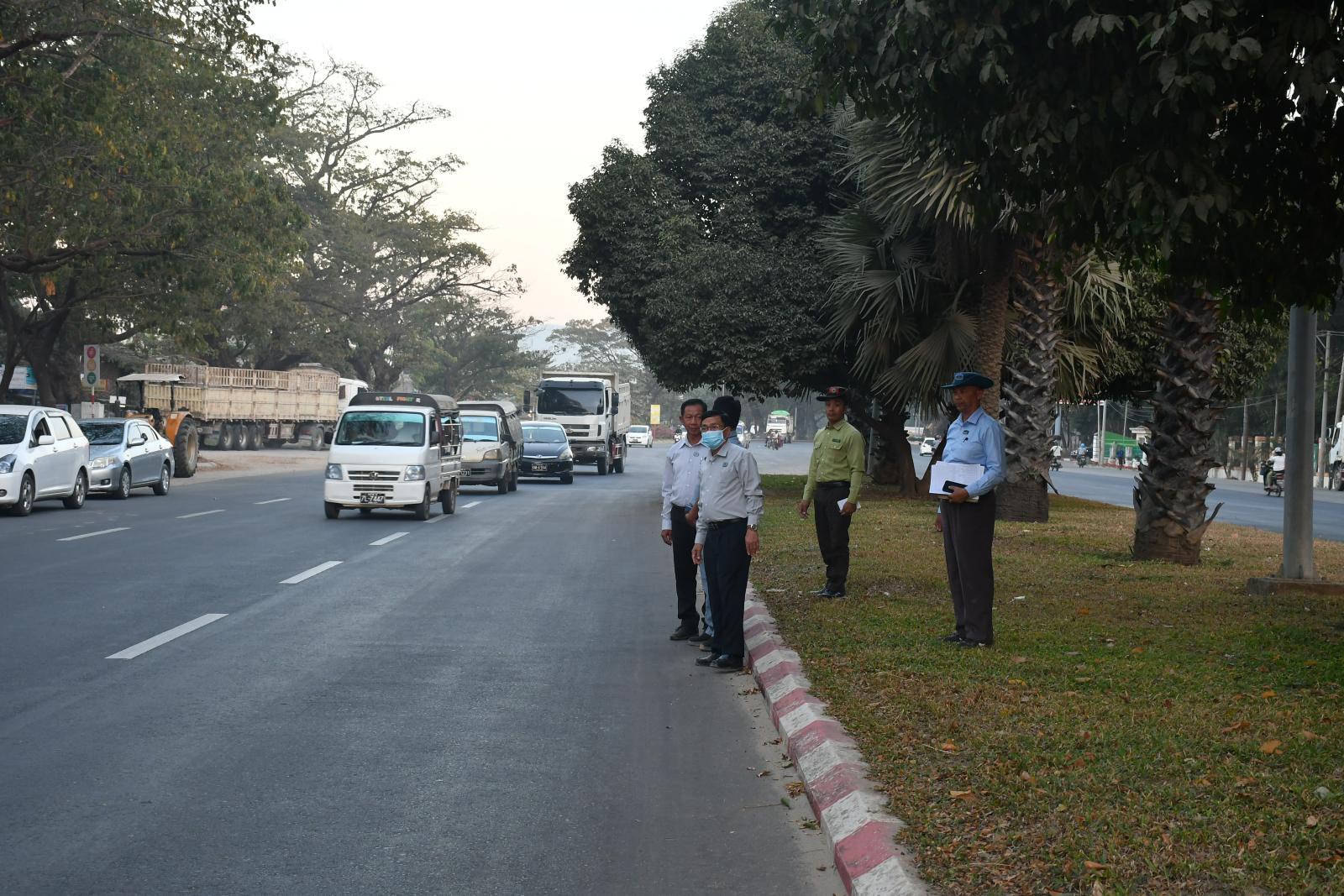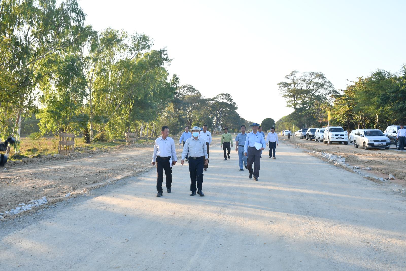 ယင်းနောက် လယ်ဝေးမြို့နယ်၊ H-1 လမ်း (ရန်ကုန်-မန္တလေးလမ်းဟောင်းမှ မြို့ရှောင်လမ်း) အထိ မူလ (၂၄ ပေ)အကျယ် (၂)လမ်းသွား ကွန်ကရစ်လမ်းမှ (၄၈ ပေ)အကျယ် (၄)လမ်းသွား ကွန်ကရစ်လမ်းအဖြစ် တိုးချဲ့ခြင်းလုပ်ငန်း ဆောင်ရွက်နေမှုအား ကြည့်ရှု့စစ်ဆေးပြီး တာဝန်ရှိသူများအား လုပ်ငန်းများ အမြန်ပြီးစီးအောင် လူအင်အား၊ စက်ယန္တရားအင်အား တိုးမြှင့်ဆောင်ရွက်ရေး၊ အရည်အသွေးပြည့်မီသည့်ပစ္စည်းများကိုသာ လုပ်ငန်းခွင်တွင် အသုံးပြုရေး၊ ငလျင်ဘေး အပါအဝင် သဘာဝဘေးအန္တရာယ် ခံနိုင်ရည်ရှိအောင် သတ်မှတ်စံချိန်၊ စံညွှန်းများနှင့်အညီ ဆောင်ရွက်ရေး၊ လမ်းဘေးဝဲ/ယာ တစ်လျှောက်စိုက်ပျိုးထားသည့် အရိပ်ရအပင်များအား စနစ်တကျစိုက်ပျိုးစေရန်နှင့် ပြန်လည်အစားထိုးစိုက်ပျိုးရန်တို့ကို မှာကြားခဲ့သည်။