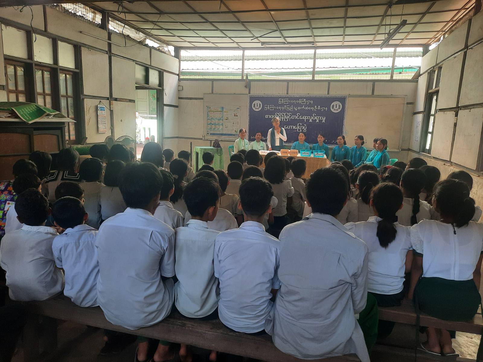 ၎င်းနောက် ကျောင်းသား၊ ကျောင်းသူများက မြို့နယ်ပြန်ကြားရေးနှင့်ပြည်သူ့ဆက်ဆံရေးဦးစီးဌာနမှ ပြသထားသော နံရံကပ်စာစောင်များနှင့် သုတ/ရသစာအုပ်စာစောင်များအား စိတ်ပါဝင်စားစွာ ကြည့်ရှုခဲ့ကြသည်။