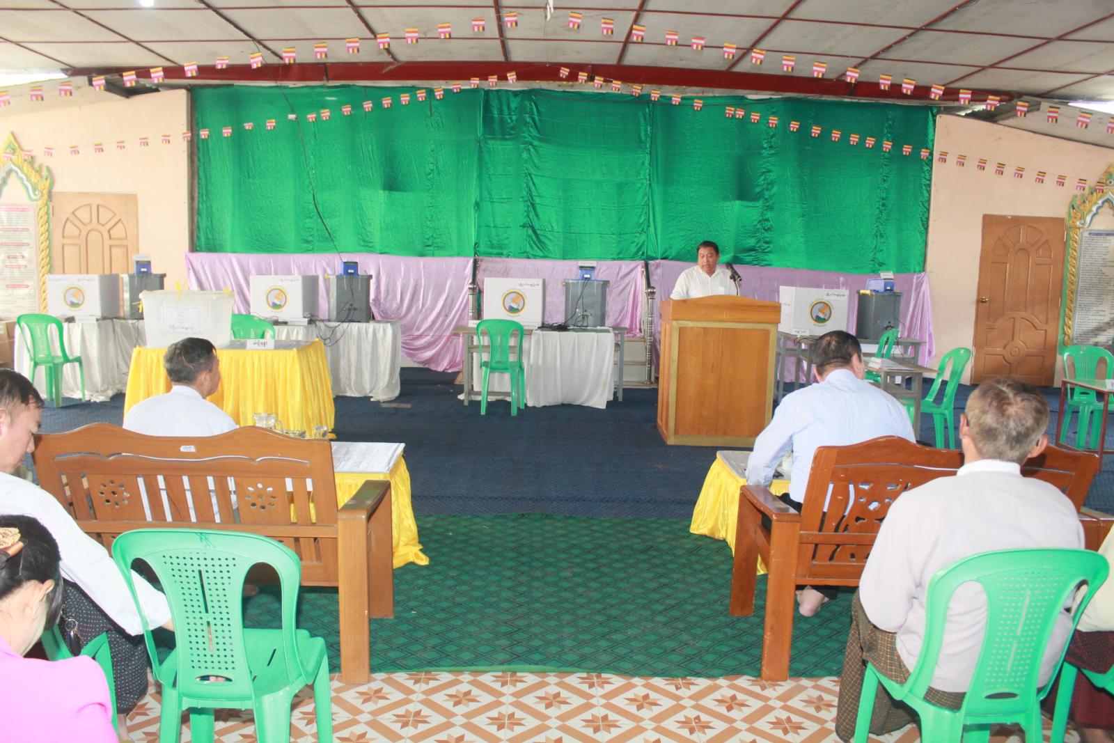 ရှေးဦးစွာ ပြည်ထောင်စုရွေးကောက်ပွဲကော်မရှင်အဖွဲ့ဝင် ဦးတင်ဆွေဝင်းနှင့်အဖွဲ့၊ ခရိုင်စီမံခန့်ခွဲရေးနှင့်အုပ်ချုပ်ရေးကော်မတီအဖွဲ့ဝင်များ၊ မြို့နယ်စီမံခန့်ခွဲရေးနှင့် အုပ်ချုပ်ရေးကော်မတီအဖွဲ့ဝင်များက အမှတ် (၁၇) ရပ်ကွက်ရှိ ရွှေဟင်္သာကျောင်းတိုက် ဗိမာန်၌ မြန်မာအီလက်ထရောနစ်မဲပေးစက်နှင့် ဆက်စပ်ပစ္စည်းများ ထားရှိရာနေရာသို့ သွားရောက် ကြည့်ရှုစစ်ဆေးပြီး လိုအပ်သည်များမှာကြားခဲ့သည်။