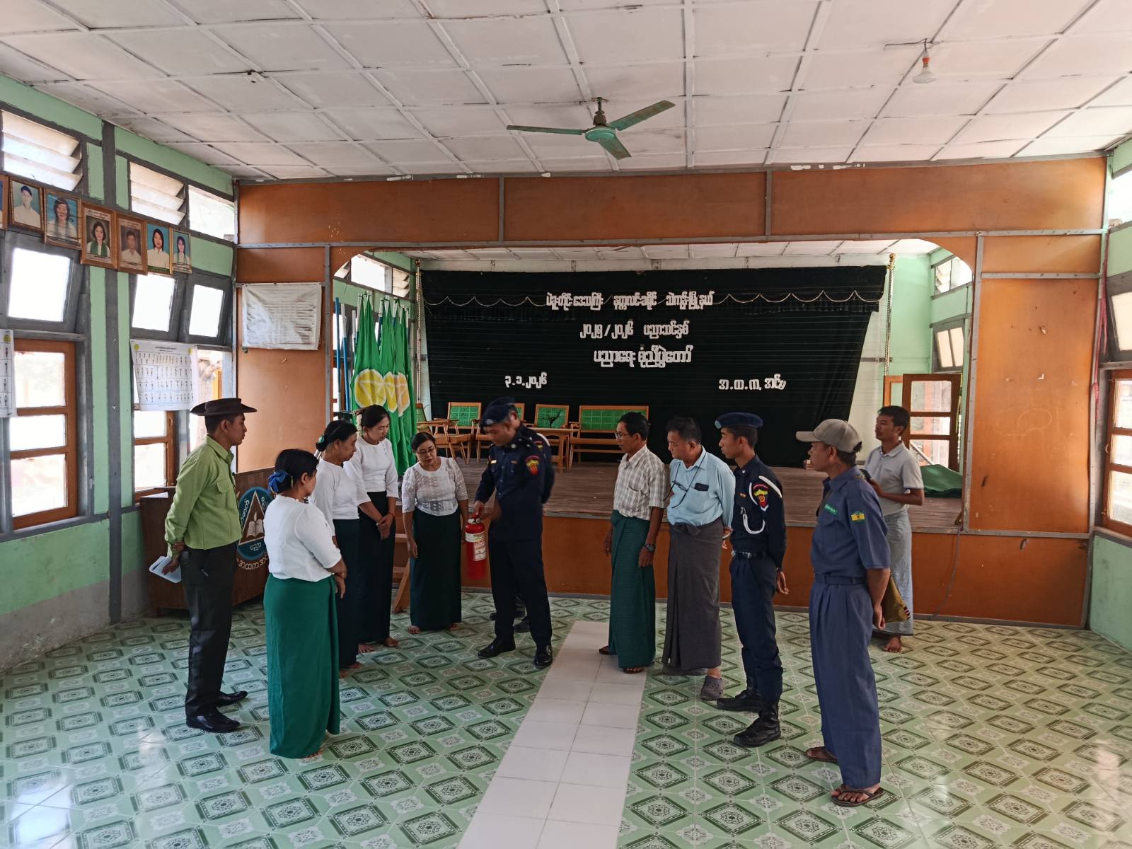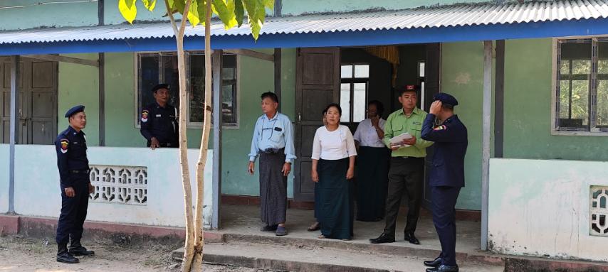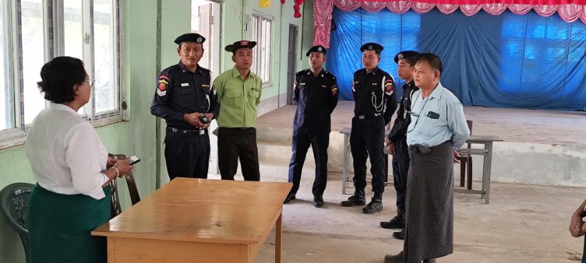 ထိုသို့ ကွင်းဆင်းစစ်ဆေးရာတွင် မြို့နယ်မီးသတ်ဦးစီးမှူး ဦးကျော်မင်းထိုက်နှင့် မီးသတ်တပ်ဖွဲ့ဝင်များ၊ သက်ဆိုင်ရာမြို့ အုပ်ချုပ်ရေးမှူးများက မဲရုံကျင်းပမည့် တည်နေရာများတွင် မီးလောင်မှု၊ မီးလန့်မှုများ မဖြစ်ပေါ်စေရေး၊ မီးဘေးလုံခြုံမှုရှိစေရန်၊ မီးဘေးလုံခြုံရေးအတွက် လိုက်နာဆောင်ရွက်ရမည့်အချက်များ၊ မီးဘေးကြိုတင်ကာကွယ်ရေး လုပ်ငန်းစဉ်များ၊ မီးသတ်ဆေးဘူး ကိုင်တွယ်အသုံးပြုနည်းလမ်းများ၊ မီးသတ်ဆေးဘူး အပါအဝင် အခြားနည်းလမ်းများဖြင့် မီးငြှိမ်းသတ်နည်းများ သရုပ်ပြသဆောင်ရွက်ပေးခဲ့ပြီး လိုအပ်သည်များအား ဆွေးနွေးမှာကြားခဲ့ကြောင်း သိရသည်။