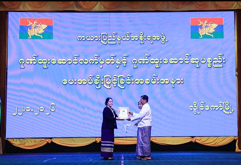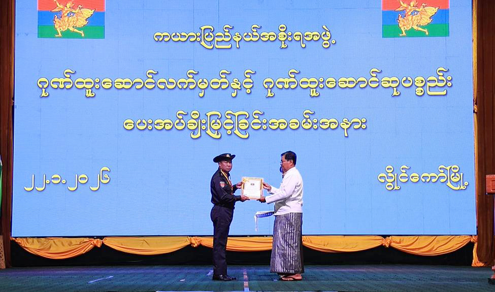 (၇၄) နှစ်မြောက် ကယားပြည်နယ်နေ့အထိမ်းအမှတ်ပြခန်းများ ဆုချီးမြှင့်ပွဲ၊ ဂုဏ်ထူးဆောင်လက်မှတ်နှင့် ဂုဏ်ထူးဆောင်ဆုပစ္စည်းများ ချီးမြှင့်ပေးအပ်ခြင်းအခမ်းအနားကို ဇန်နဝါရီ ၂၂ ရက် နံနက်ပိုင်းက လွိုင်ကော်မြို့ ပြည်နယ်ခန်းမ၌ ကျင်းပသည်။