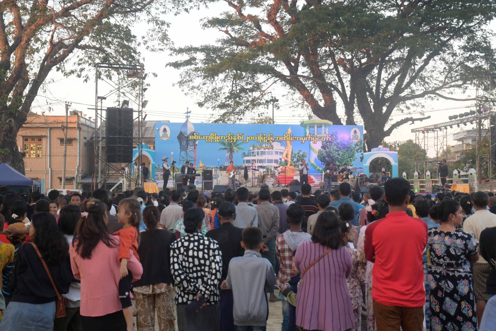 ရခိုင်ပြည်နယ်ဝန်ကြီးချုပ် ဦးထိန်လင်းနှင့်ဇနီး ပြည်နယ်အမျိုးသမီးရေးရာအဖွဲ့ နာယက ဒေါ်ဆွေဆွေမြတ်၊ ပြည်နယ်အစိုးရအဖွဲ့ဝင်များနှင့်ဇနီးများ၊ ဌာနဆိုင်ရာများ၊ ပွဲတော်ဖြစ်မြောက်ရေးကော်မတီဥက္ကဋ္ဌနှင့် တာဝန်ရှိသူများသည် ဇန်နဝါရီ ၂၂ ရက် ညနေပိုင်းတွင် ဝင်္ကဘာကွင်း၌ စစ်တွေမြို့ တည်နှစ်(၂၀၀)ပြည့် အထိမ်းအမှတ်တေးဂီတဖျော်ဖြေပွဲနှင့် ကံစမ်းမဲဖောက်ပေးနေမှုအား ကြည့်ရှုအားပေးသည်။