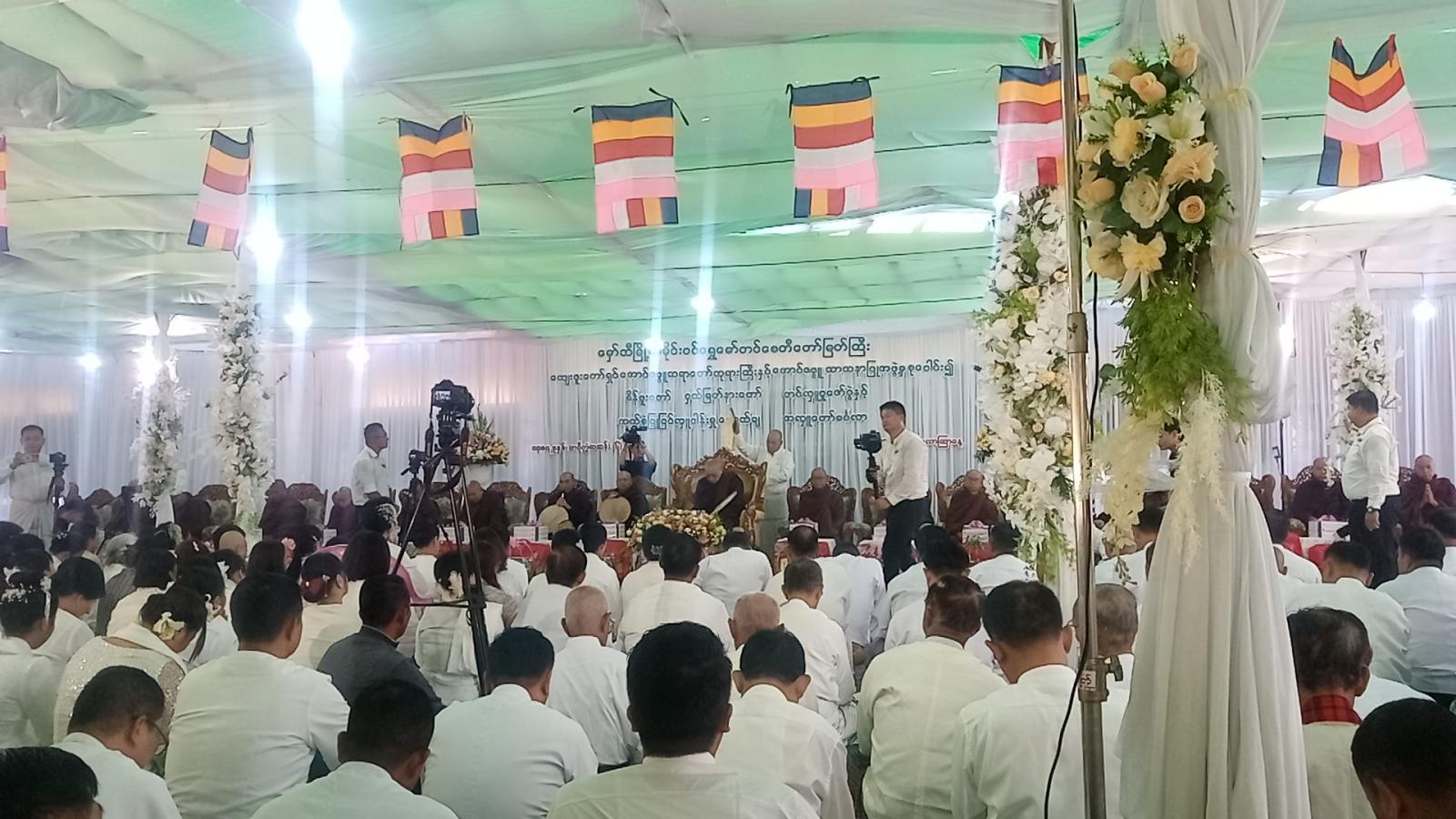 ရှေးဟောင်းသမိုင်းဝင်ဆံတော်ရှင်ရွှေ မော်တင်စေတီတော်မြတ်ကြီး၏ စိန်ဖူးတော် ငှက်မြတ်နားတော် လုံးတော်ပြည့်စတီးရွှေသင်္ကန်းကပ်လှူပူဇော်ပွဲနှင့် ဘက်စုံပြုပြင်လှူဒါန်းခြင်းအခမ်းအနားဆိုင်းဘုတ်အား အောင်ဇမ္ဗူဆရာတော်နှင့် ရန်ကုန်တိုင်းစစ်ဌာနချုပ်တိုင်းမှူးဗိုလ်ချုပ်ပြည့်စုံလင်းတို့က စက်ခလုတ်နှိတ်ဖွင့်လှစ်ကာ ရေစက်သွန်းချအလှူတော်မင်္ဂလာအခမ်းအနားအား နမောတဿ သုံးကြိမ်ရွတ်ဆို ဘုရားကန်တော့၍ အခမ်းအနားကို ဖွင့်လှစ်ကာ မဟာဗောဓိရိပ်ငြိမ်တောရဓမ္မရိပ်သာဆရာတော်ဘုရားကြီးထံ၌ ငါးပါးသီလခံယူဆောက်တည်ကြပြီး ရန်ကုန်တိုင်းစစ်ဌာနချုပ်တိုင်းမှူး ဗိုလ်ချုပ် ပြည့်စုံလင်း၊ အလှူရှင် ဦးသူရမြင့်ဆွေ ဒေါ်သန္တာဌေးနှင့် မိသားစုနှင့် ရွှေမော်တင်စေတီတော်ဂေါပကဥက္ကဋ္ဌနှင့် အဖွဲ့ဝင်များ၊ စေတနာရှင်အလှူရှင်များက လှူဖွယ်ဝတ္ထုများ ဆက်ကပ်လှူဒါန်းကာ အောင်ဇမ္ဗူတောရဆရာတော်ဘုရားမှ ဩဝါဒကထာမြွက်ကြား၍ လှူဖွယ်ဝတ္ထုအစုစုတို့အတွက် ရေစက်သွန်းချအမျှပေးဝေကာ ရှေးဟောင်းသမိုင်းဝင်ဆံတော်ရှင်ရွှေမော်တင်စေတီတော်မြတ်ကြီး၏ စိန်ဖူးတော် ငှက်မြတ်နားတော် လုံးတော်ပြည့် စတီးရွှေသင်္ကန်း ကပ်လှူပူဇော်ပွဲနှင့် ဘက်စုံပြုပြင်မွန်မံလှူဒါန်းပူဇော်ခြင်းရေစက်သွန်းချမင်္ဂလာအခမ်းအနားကို ဗုဒ္ဓသာသနံစိရံတိဋ္ဌတု သုံကြိမ်ရွတ်ဆို၍ ရတနာရွှေမိုးငွေမိုးရွာသွန်းဖြိုးကာ အခမ်းအနားပိတ်သိမ်းခဲ့ကြောင်း သိရသည်။