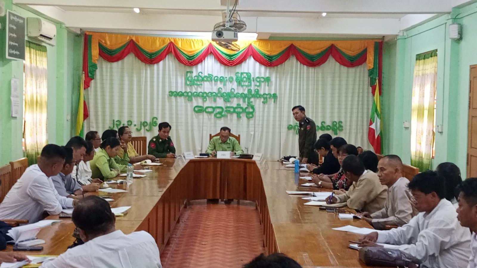 ဆက်လက်၍ မြိုနယ်စီမံခန့်ခွဲရေးနှင့်အုပ်ချုပ်ရေးကော်မတီ အဖွဲ့ဝင် ဗိုလ်မှူးဝင်းမြင့်အောင်က လုံခြုံရေးဆိုင်ရာကိစ္စများ ရှင်းလင်းဆွေးနွေးခြင်း၊ အတွင်းရေးမှူး မြို့နယ်ရဲမှူးက အလံများ သစ်လွင်တောက်ပရေးနှင့် လုံခြုံရေးဆောင်ရွက်မှုအခြေအနေများ ရှင်းလင်းဆွေးနွေးခြင်း၊ မြိုနယ်စီမံခန့်ခွဲရေးနှင့်အုပ်ချုပ်ရေးကော်မတီအဖွဲ့ဝင် မြို့နယ်လဝကမှူးက လုပ်ငန်းဆောင်ရွက်ပေးမှုအခြေအနေများ ရှင်းလင်းဆွေးနွေးခြင်းနှင့် တက်ရောက်လာသူ ဌာနဆိုင်ရာအသီးသီးက လုပ်ငန်းဆောင်ရွက်နေမှု အခြေအနေများကို အသီးသီးတင်ပြဆွေးနွေးခြင်းများ ဆောင်ရွက်ကြသည်။
