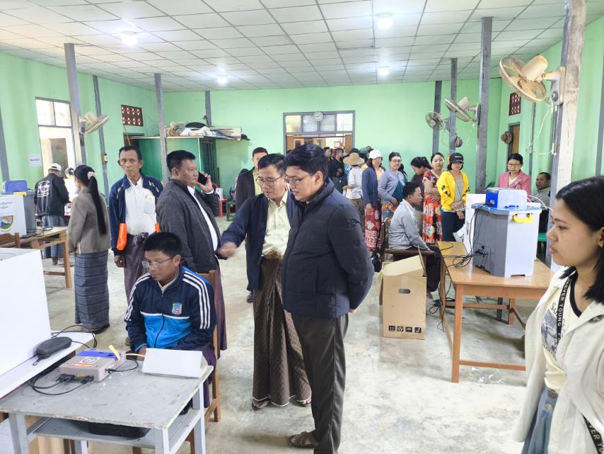 မြို့နယ်အတွင်းရှိ မဲရုံအသီးသီးတွင် မဲဆန္ဒရှင်ပြည်သူများက မဲပေးစက်ဖြင့် လွှတ်တော်အသီးသီးအတွက် ကိုယ်စားလှယ်များကို ဆန္ဒပြုနေမှုများ၊ မဲရုံမှူးနှင့်မဲရုံ တာဝန်ရှိသူများဆန္ဒမဲပေးနိုင်ရန်ဆောင်ရွက်နေခြင်းများကို ခရိုင်စီမံခန့်ခွဲရေးနှင့် အုပ်ချုပ်ရေးကော်မတီဥက္ကဋ္ဌ ဦးခင်မောင်ထွေးနှင့် ခရိုင်ရွေးကောက်ပွဲကော်မရှင်အဖွဲ့ခွဲဥက္ကဋ္ဌ ဦးဖေအောင်သူတို့က ကြည့်ရှုအားပေးသည်။