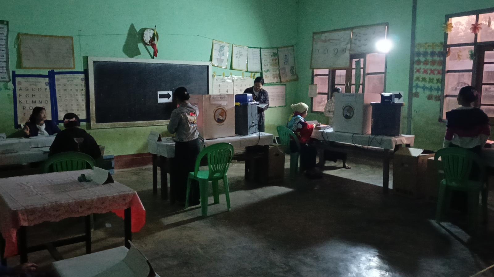 မြို့နယ်အတွင်းရှိမဲရုံများတွင် ပြည်သူများမှ အီလက်ထရောနစ် (MEVM)မဲပေးစက်ဖြင့် သက်ဆိုင်ရာမဲဆန္ဒနယ်အလိုက် ဝင်ရောက်ယှဥ်ပြိုင်ကြသည့် နိုင်ငံရေးပါတီ (၇) ခုမှ ပါတီကိုယ်စားလှယ်လောင်းများကို ဆန္ဒမဲပေးလျက်ရှိကြောင်းသိရသည်။