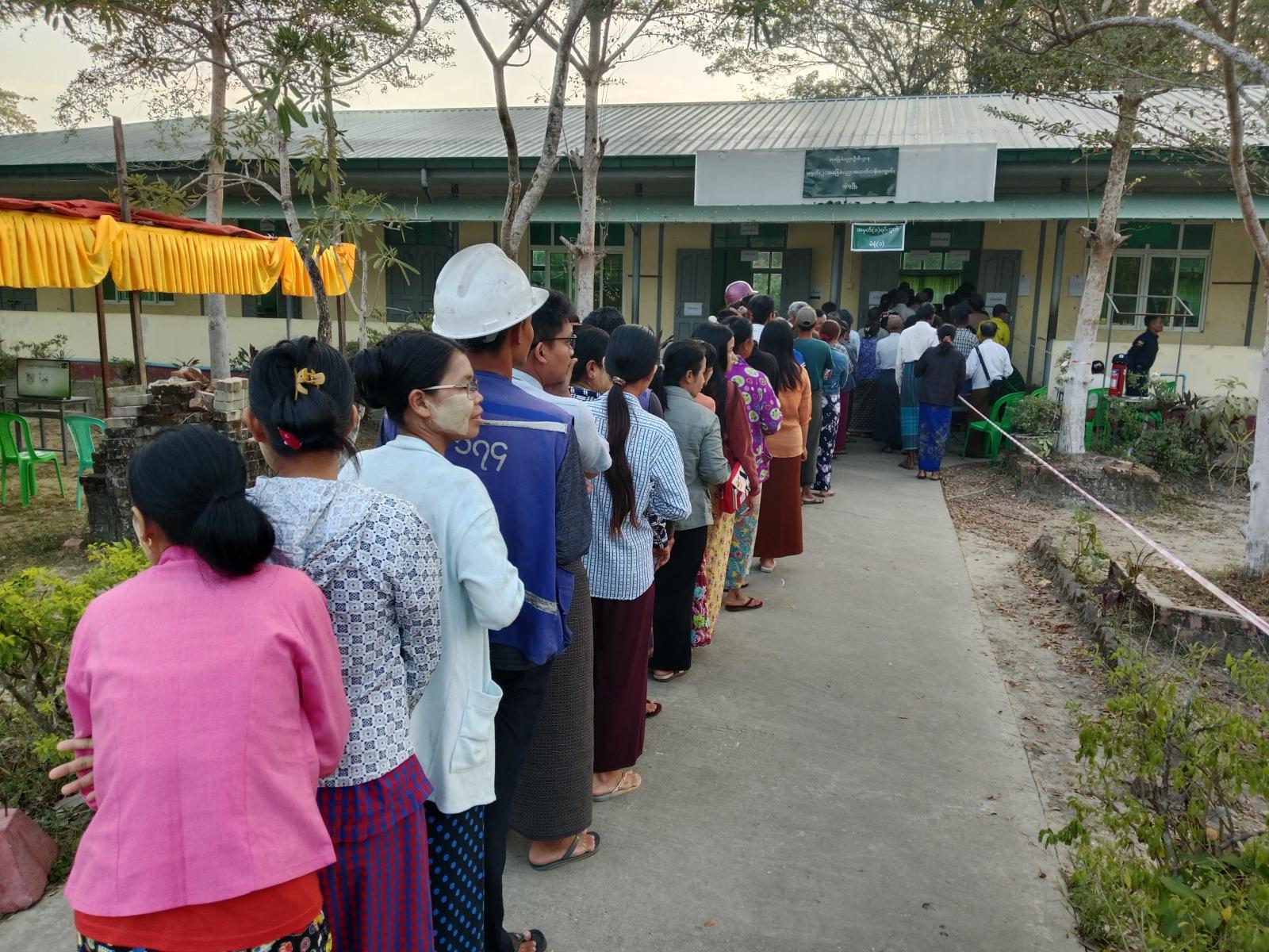 မဲရုံမဖွင့်လှစ်မီ မဲရုံတာဝန်ရှိသူများက လွှတ်တော်တစ်ရပ်စီအတွက် ထိန်းချုပ်စက်၊ ဆန္ဒပြုစက်နှင့် မဲပေးစက်ဖော်ပြသည့်စက်တို့ပါဝင်သော အီလက်ထရောနစ်မဲပေးစက်တို့ကို စနစ်တကျတပ်ဆင်ကာ နံနက်(၆)နာရီတိတိတွင် မဲရုံမှူးက မဲရုံဖွင့်လှစ်ပေးခဲ့သည်။ ထို့နောက် မဲဆန္ဒရှင် ပြည်သူများမှ လွှတ်တော်အသီးသီးအတွက် မဲပေးစက်ဆန္ဒမဲပေးခန်းများ၌ လွတ်လပ်စွာ မိမိဆန္ဒပြုသည့် ကိုယ်စားလှယ်အား လွတ်လပ်စွာမဲထည့်ခဲ့ကြောင်း သိရသည်။