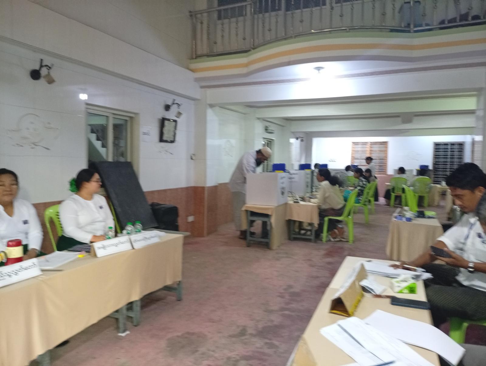 မဲရုံမဖွင့်လှစ်မီ မဲရုံတာဝန်ရှိသူများက လွှတ်တော်တစ်ရပ်စီအတွက် ထိန်းချုပ်စက်၊ ဆန္ဒပြုစက်နှင့် မဲပေးချက်ဖော်ပြသည့် စက်တို့ပါဝင်သော အီလက်ထရောနစ်မဲပေးစက်တို့ကို စနစ်တကျတပ်ဆင်ကာ နံနက် (၆) နာရီတိတိတွင် မဲရုံမှူးက မဲရုံဖွင့်လှစ်ပေးခဲ့သည်။ ထို့နောက် စောင့်ဆိုင်းနေသည့် မဲဆန္ဒရှင်ပြည်သူများမှ လွှတ်တော်အသီးသီးအတွက် လျှို့ဝှက်ဆန္ဒပြုခန်းများ၌ ဆန္ဒပြုလျက်ရှိကြသည်။
