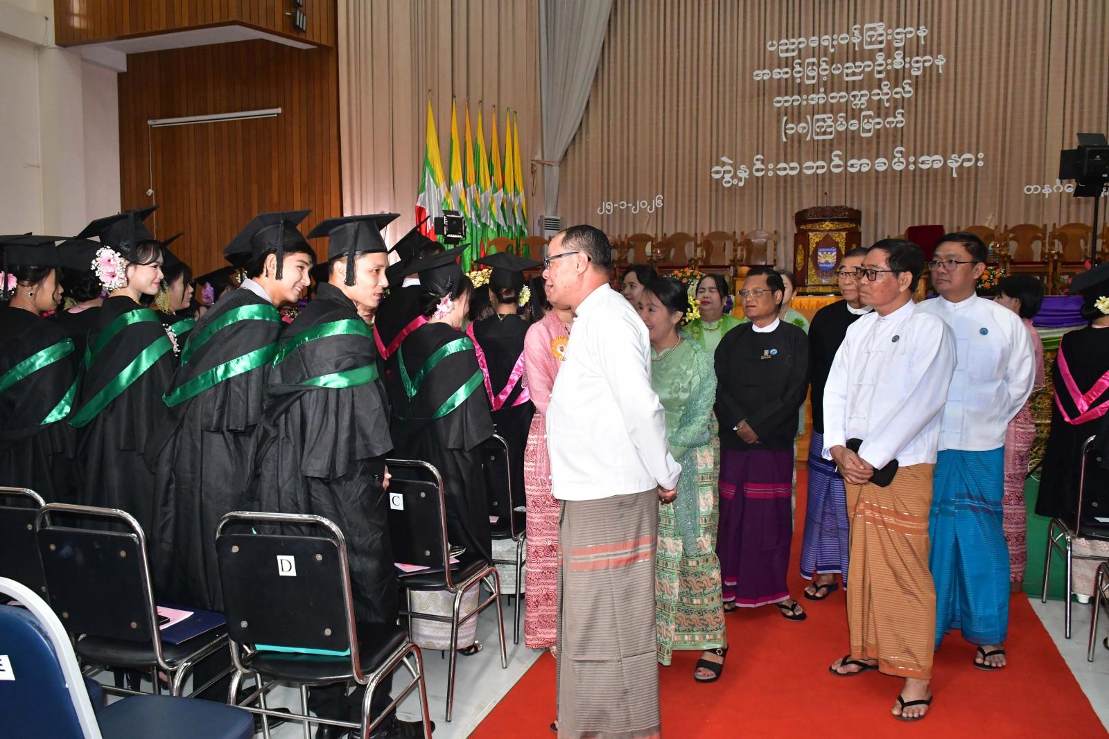 အဆိုပါဘွဲ့နှင်းသဘင်အခမ်းအနားသို့ တက်ရောက်ခဲ့သော ပြည်နယ်ဝန်ကြီးချုပ် ဦးစောမြင့်ဦးနှင့် ပြည်နယ်အစိုးရ အဖွဲ့ဝင်များသည် ဘွဲရမောင်မယ်များနှင့် မိဘဆွေမျိုးများအား ရင်းရင်းနှီးနှီးတွေ့ဆုံ၍ ဂုဏ်ပြုအားပေးစကားများ ပြောကြားခဲ့ကြောင်း သတင်းရရှိသည်။