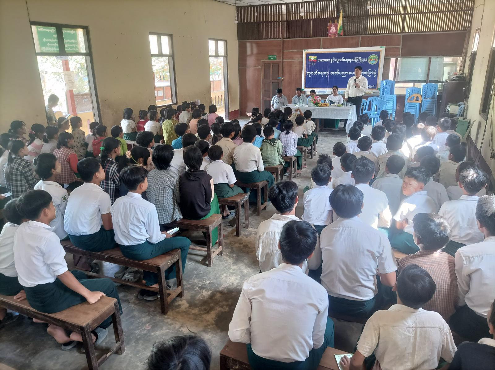 အခမ်းအနားအပြီးတွင် ကျောင်းသား/သူများ ဗဟုသုတတိုးပွားစေရန်ရည်ရွယ်၍ ပြန်ကြားရေးနှင့်ပြည်သူ့ဆက်ဆံရေးဦးစီးဌာနမှ ခင်းကျင်းပြသထားသော သုတ/ရသစာအုပ် များဖတ်ရှုစေခဲ့ပြီး၊ “ကလေးအလုပ်သမားပပျောက်ရေး”၊ “မီးခိုးမြူငွေ့အန္တရာယ်ဝိုင်းဝန်း စုပေါင်းတို့ကာကွယ်”၊ “ပတ်ဝန်းကျင်သာယာဖို့ စနစ်တကျအမှိုက်စွန့်ပစ်ကြပါစို့” စသည့်သိကောင်းစရာနံရံကပ်စာစောင်များ ပြသပေးခဲ့ကြောင်း သိရသည်။