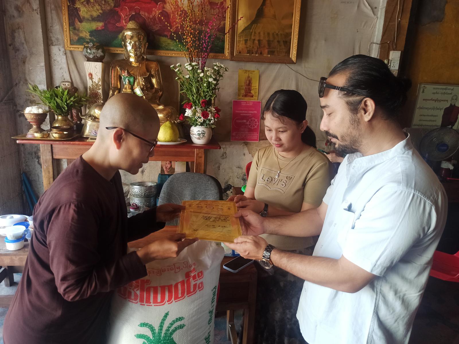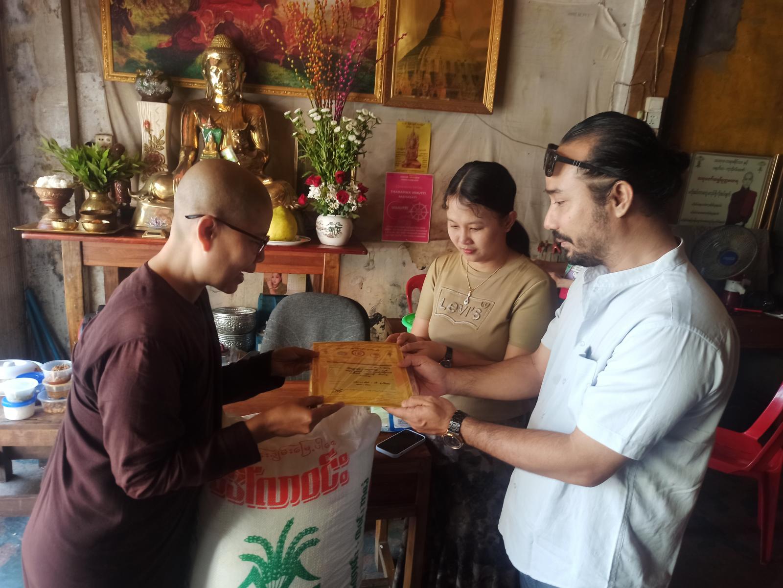 သင်္ဃန်းကျွန်းမြို့နယ် ကျိုက္ကဆံသဘာဝတရားဆေးရုံနှင့် ကုသိုလ်ဘဏ်သို့ ကိုဝဏ္ဏထွန်း+မရွှေဇင်လှိုင် မိသားစုက ဆန်၊ ဆီ၊ ဆေး၊ ဆား လှူဒါန်း