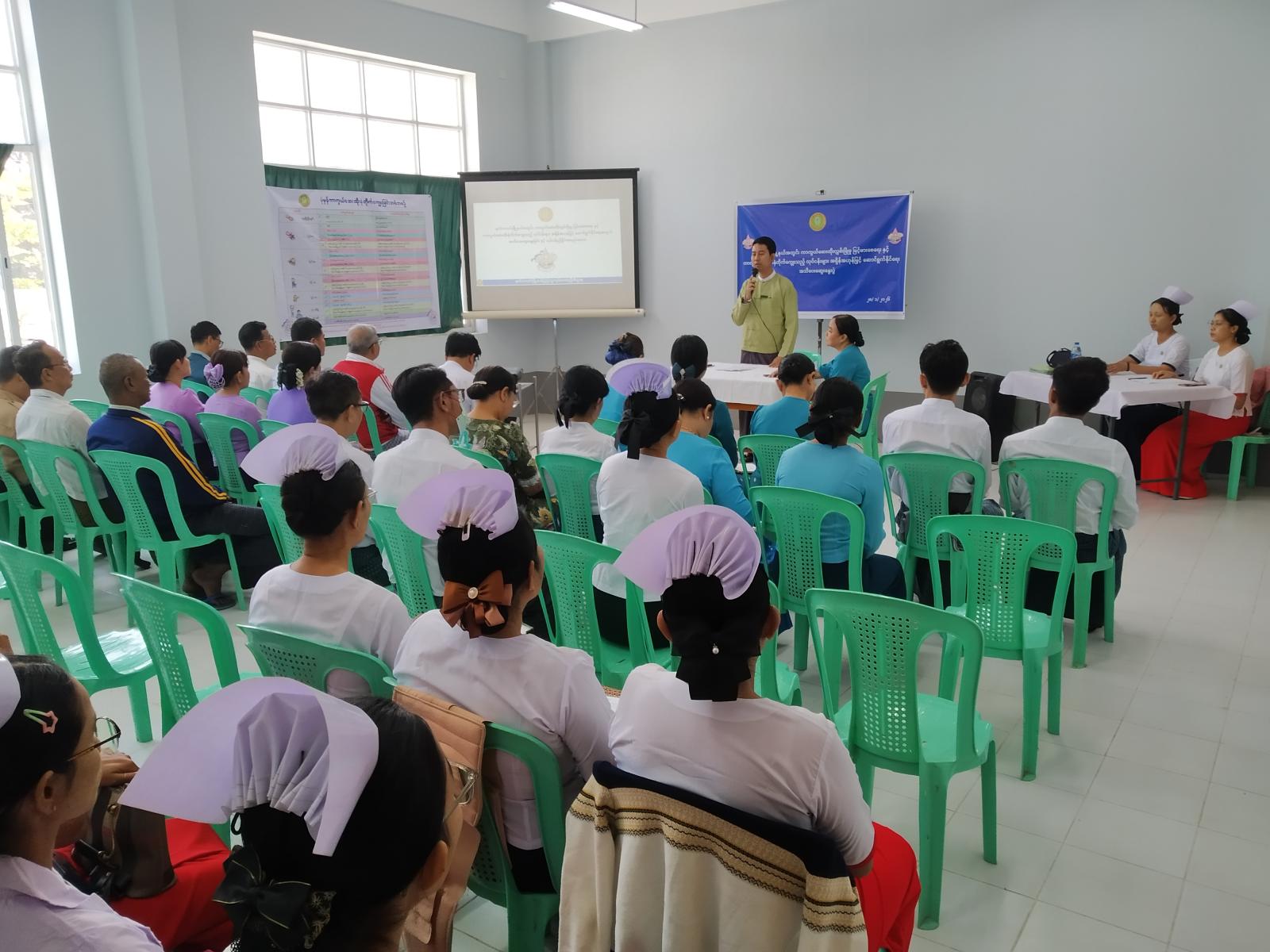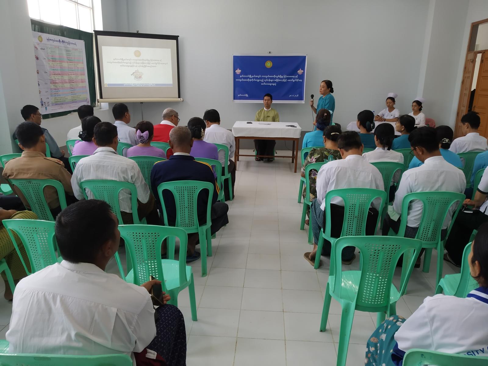 ဦးစွာ မြို့နယ်စီမံခန့်ခွဲရေးနှင့် အုပ်ချုပ်ရေးကော်မတီဥက္ကဋ္ဌ ဦးကျော်ကျော်ဦးက အဖွင့်အမှာစကားပြောကြားပြီး၊ မြို့နယ်ပြည်သူ့ကျန်းမာရေးဦးစီးဌာနမှူး ဒေါက်တာအေးအေးသန့်က ကာကွယ်ဆေးထိုးနှံတိုက်ကျွေးခြင်းလုပ်ငန်းများ ပိုမိုကောင်းမွန်စွာ ဆောင်ရွက်နိုင်ရေးနှင့်ပတ်သက်၍ ရှင်းလင်းဆွေးနွေးခြင်း၊ ကာကွယ်ဆေးထိုးလွှမ်းခြုံမှုနှင့် ကာကွယ်ဆေးဖြင့် ကာကွယ်၍ရသောရောဂါများ ဖြစ်ပွားမှုအခြေအနေနှင့်ပတ်သက်၍ ရှင်းလင်းဆွေးနွေးပေးပြီး၊ ကာကွယ်ဆေးထိုးနှံတိုက်ကျွေးခြင်းလုပ်ငန်း မှတ်တမ်း Video ပြသပေးသည်။