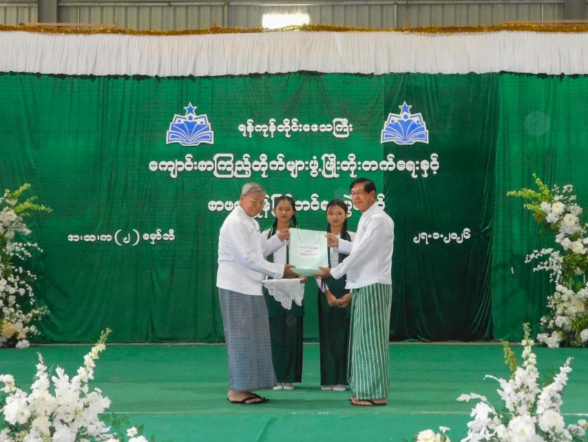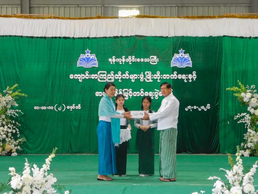 ၄င်းနောက် အ.ထ.က (၂) ရွှေရတုခန်းမတွင် ကျောင်းစာကြည့်တိုက်များ ဖွံ့ဖြိုးတိုးတက်ရေးနှင့် စာဖတ်ရှိန်မြှင့်တင်ရေးအခမ်းအနားကို ကျင်းပပြုလုပ်ရာ တိုင်းဒေသကြီးဝန်ကြီးချုပ်က စာပေဟောပြောမည့် စာရေးဆရာမောင်ချိုဝေကို အမှတ်တရဂုဏ်ပြုလက်ဆောင်ကိုလည်းကောင်း၊ ကျောင်းစာကြည့်တိုက်များအတွက် သုတရသစာအုပ်များအတွက် အလှူငွေကျပ် (၃၅) သိန်းကို ရန်ကုန်တိုင်းဒေသကြီး ပြန်ကြားရေးနှင့်ပြည်သူ့ဆက်ဆံရေးဦးစီးဌာန ညွှန်ကြားရေးမှူး ဒေါ်ခင်စောလင်းထံသို့လည်းကောင်း၊ ဖျော်ဖြေရေးအဖွဲ့များအား အမှတ်တရဂုဏ်ပြုဆုငွေများလည်းကောင်း ပေးအပ်ရာတာဝန်ရှိသူများ ကလက်ခံရယူခဲ့ကြသည်။