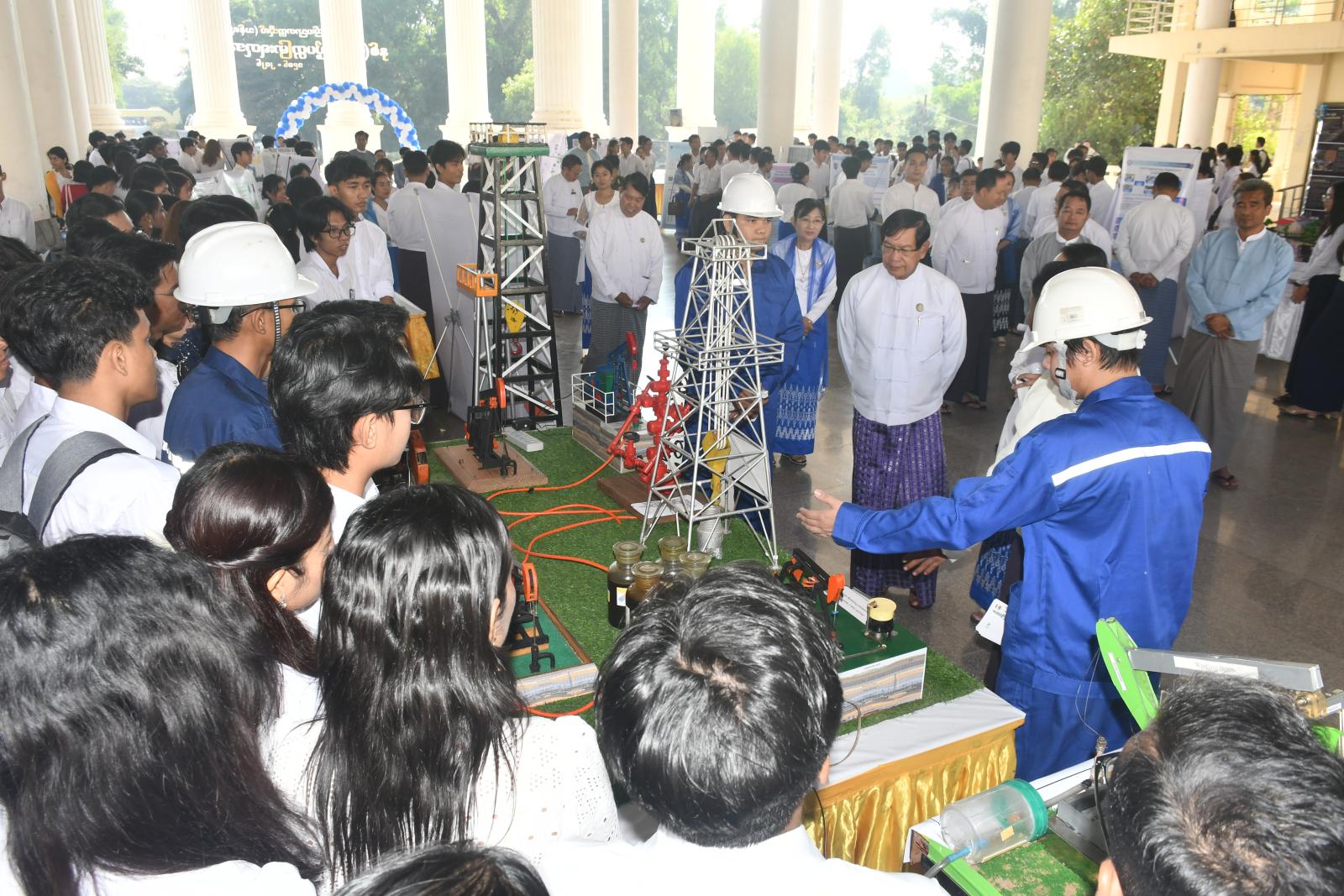 ၎င်းနောက် ရန်ကုန်တိုင်းဒေသကြီး ဝန်ကြီးချုပ် ဦးစိုးသိန်းနှင့် အဖွဲ့က ကျောင်းသား၊ ကျောင်းသူများ၏ သုတေသန Project ပြခန်းများအား လှည့်လည်ကြည့်ရှုအားပေးခဲ့ကြကြောင်း သိရသည်။