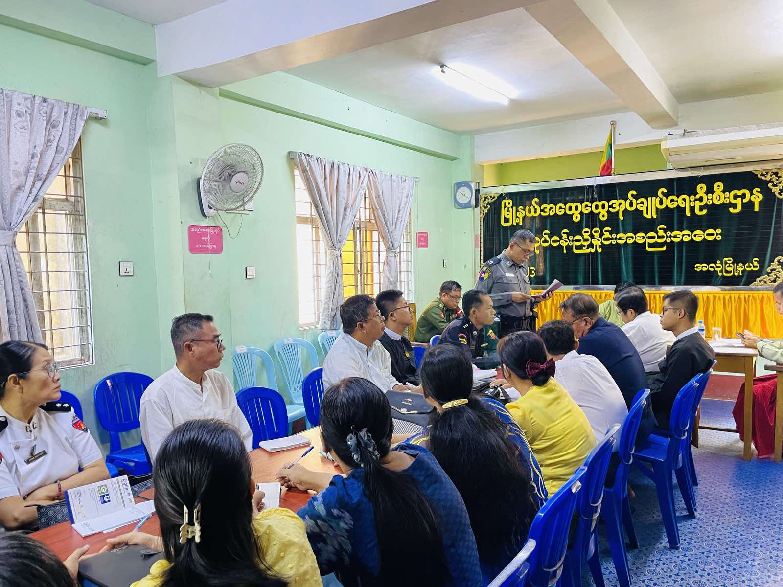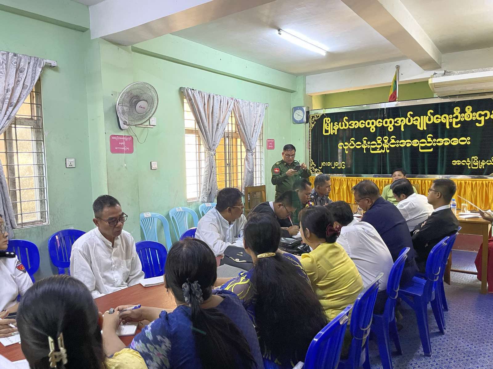 အလုံခရိုင်၊ အလုံမြို့နယ်အထွေထွေအုပ်ချုပ်ရေးဦးစီးဌာနရုံး အစည်းအဝေးခန်းမ၌ ပုံမှန်လုပ်ငန်းညှိနှိုင်းအစည်းအဝေးကို ယမန်နေ့ နံနက်ပိုင်းက မြို့နယ်စီမံခန့်ခွဲရေးနှင့် အုပ်ချုပ်ရေးကော်မတီအဖွဲ့၀င်များ၊ ဌာနဆိုင်ရာအကြီးအကဲများ၊ ရပ်ကွက်အုပ်ချုပ်ရေးမှူးများဖြင့် ကျင်းပပြုလုပ်ခဲ့သည်။