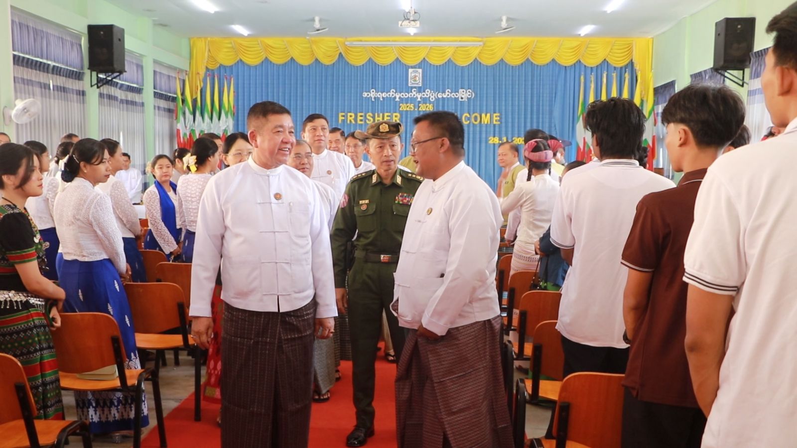 ဦးစွာအစိုးရစက်မှုလက်မှုသိပ္ပံ(မော်လမြိုင်)မှ ကျောင်းသား၊ ကျောင်းသူလေးများက မွန်တိုင်းရင်းသားရိုးရာအကဖြင့် ကပြဖျော်ဖြေခဲ့ကြပြီး မွန်ပြည်နယ်ဝန်ကြီးချုပ် ဦးအောင်ကြည်သိန်းက မွန်ပြည်နယ်တွင် ဒေသဖွံ့ဖြိုးတိုးတက်ရေးနှင့် ပြည်သူများ၏ လူမှုစီးပွားဘဝဖွံ့ဖြိုးတိုးတက်မှုကို အထောက်အကူပြုစေနိုင်ပြီး အရည်အချင်းပြည့်ဝတဲ့ အင်ဂျင်နီယာတွေ မွေးထုတ်နိုင်ရန် ရည်ရွယ်၍ အစိုးရစက်မှုလက်မှုသိပ္ပံ (မော်လမြိုင်)ကို ဖွင့်လှစ်ပေးထားခြင်းဖြစ်ကြောင်း၊ လူ့စွမ်းအားအရင်းအမြစ်အနေနဲ့ နည်းပညာနှင့်သက်မွေးပညာ လေ့ကျင့်ရေးကဏ္ဍမှာ သင်ကြားနေတဲ့ ကျောင်းသားလူငယ်များဟာ နိုင်ငံ အတွက် အရေးပါတဲ့သူများဖြစ်သည်နှင့် အညီ ယခု ကျောင်းသား၊ ကျောင်းသူ မောင်မယ်တို့ အနေဖြင့် မိမိဒေသ အတွင်း အမှန်တကယ် အသုံးချရန်လိုအပ်နေတဲ့ နည်းပညာနှင့်သက်မွေး ပညာရပ်တွေကို အကျိုးရှိရှိအသုံးချနိုင်ဖို့၊ ပြည်နယ်အတွက်သာမက နိုင်ငံတော်အတွက်ပါ အားကိုးရမယ့် အသိပညာရှင်၊ အတတ်ပညာရှင် လူတော်၊ လူကောင်းလေးတွေဖြစ်လာအောင် ကြိုးစားအားထုတ်ကြရန် မှာကြားလိုကြောင်းဖြင့် အမှာစကားပြောကြားခဲ့သည်။