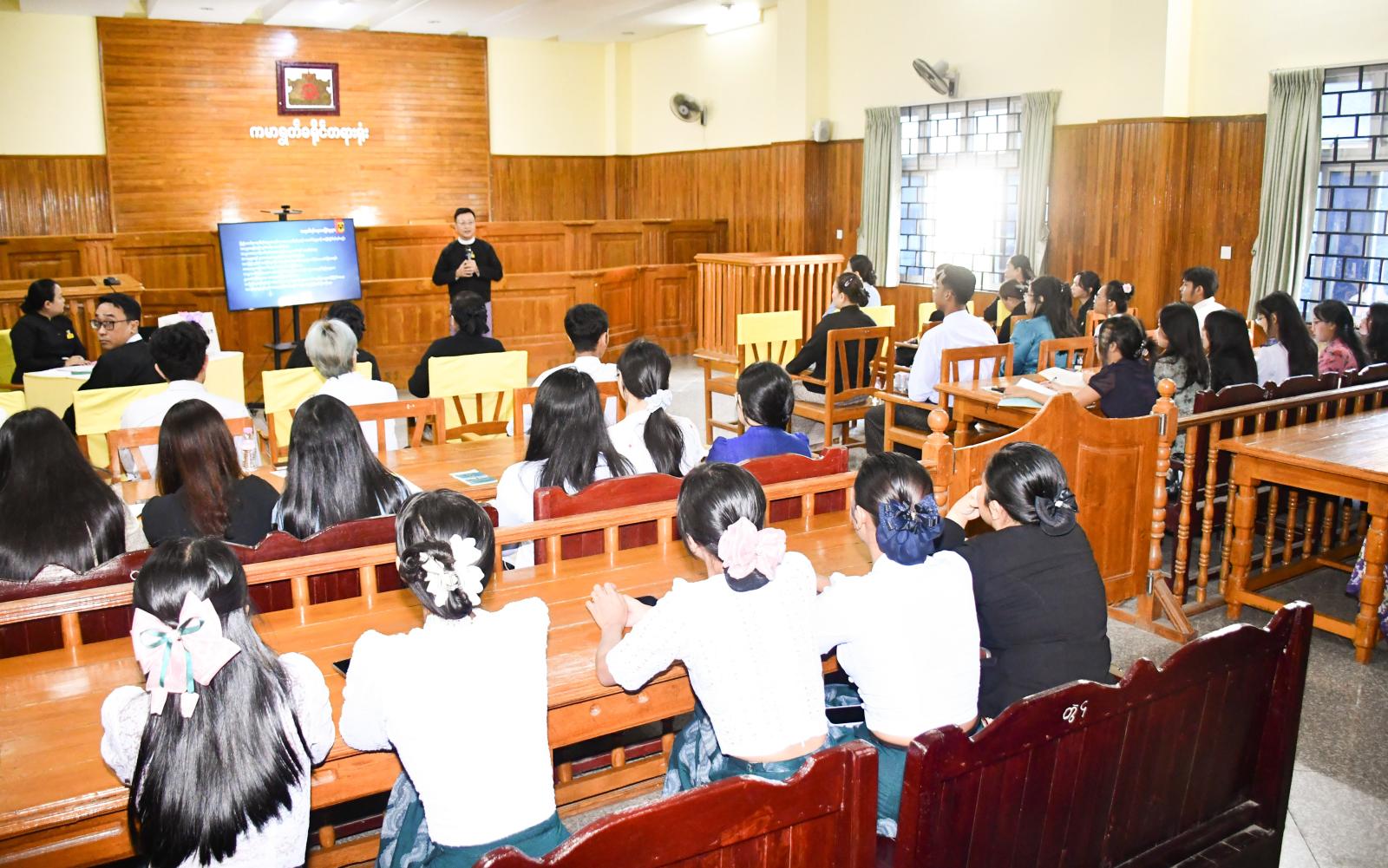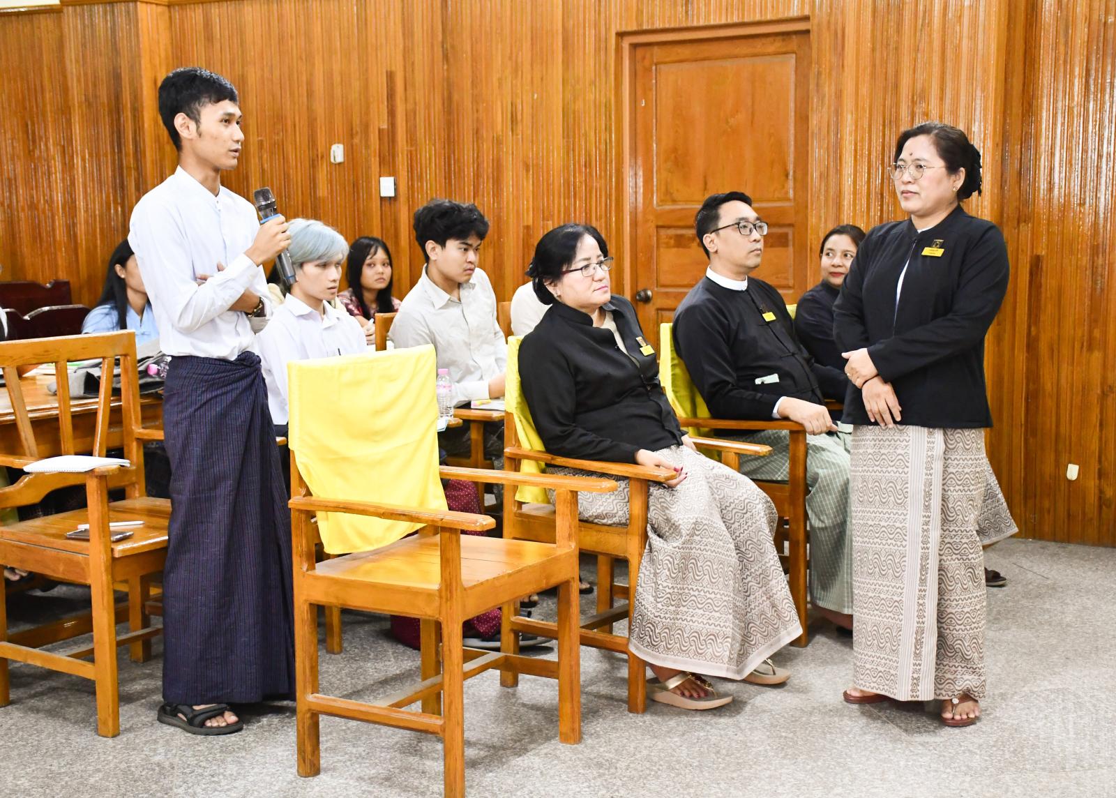 ထို့နောက် ခရိုင်တရားသူကြီးရုံးခန်းတွင် ခရိုင်တရားသူကြီးက ကြိုဆိုနှုတ်ခွန်းဆက်စကားပြောကြားပြီး တွဲဘက်ခရိုင်တရားသူကြီး ဒေါ်စန်းသိင်္ဂီက တရားစီရင်ရေးလုပ်ငန်းဆောင်ရွက်ပုံအဆင့်ဆင့်ကို ရှင်းလင်းတင်ပြသည်။ ယင်းနောက် ကျောင်းသား၊ ကျောင်းသူများက သိရှိလိုသည်များကို မေးမြန်းရာ တွဲဘက်ခရိုင်တရားသူကြီးများနှင့် ဒုတိယခရိုင် တရားသူကြီးများက ရှင်းလင်းဖြေကြားကြသည်။