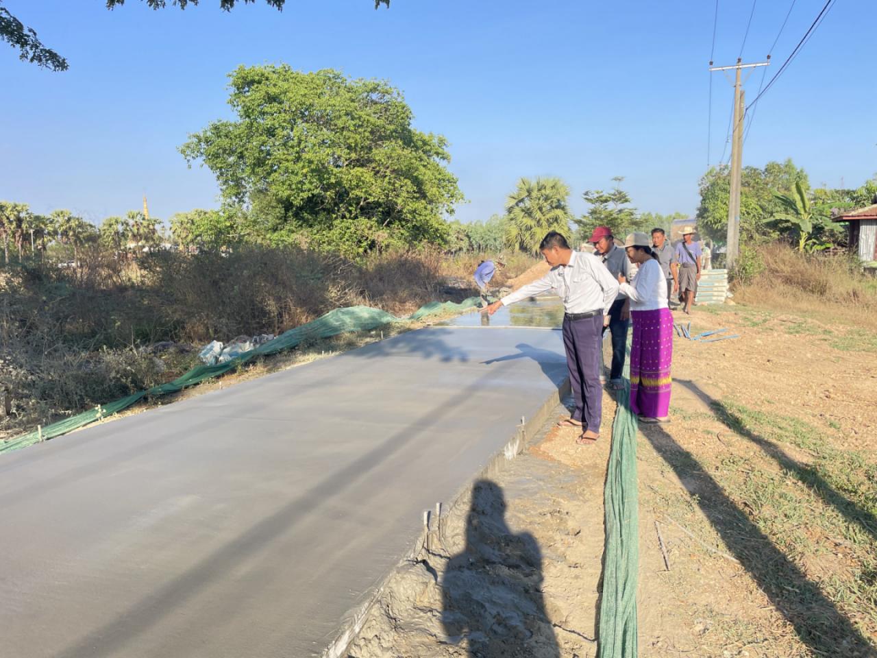 အဆိုပါလုပ်ငန်းများကို တွံတေးခရိုင်၊ ကျေးလက်ဒေသဖွံ့ဖြိုးတိုးတက်ရေးဦးစီးဌာန၊ ခရိုင်ဦးစီးမှူး ဦးအောင်သက်ဦး၊ ကွမ်းခြံကုန်းမြို့နယ်၊ မြို့နယ်ဦးစီးမှူး ဒေါ်စုသီတာလင်းတို့က Straight light co,ltd မှ တာဝန်ယူဆောင်ရွက်နေသည့် ကညင်ကုန်းကျေးရွာ၊ ကျေးရွာတွင်းလမ်း ကွန်းကရစ်လမ်းခင်းခြင်းအရှည် (၀/၀.၇၃၃) မိုင်၊ အကျယ် ၁၀ ပေ၊ ထု ၆ လက်မ၊ ကွန်းကရစ်ခင်းခြင်း ဆောင်ရွက်နေမှုအား စစ်ဆေးခဲ့ကြောင်း သိရသည်။