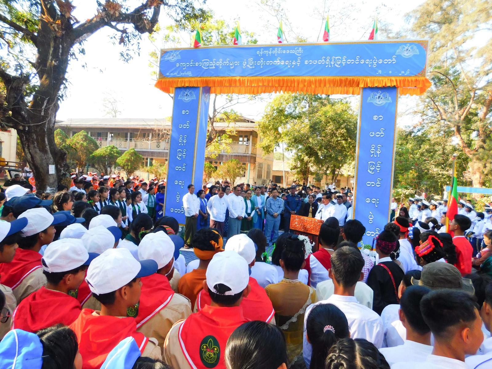 ဦးစွာ ကျောင်းစာကြည့်တိုက်များ ဖွံ့ဖြိုးတိုးတက်ရေးနှင့် စာဖတ်ရှိန်မြှင့်တင်ရေးပွဲတော်ကို မြို့တော်ဝန်ဦးဗိုလ်ဌေး၊ ရန်ကုန်တိုင်းဒေသကြီး ပညာရေးမှူး ဒေါက်တာချိုချိုမြတ်အောင်၊ ရန်ကုန်တိုင်းဒေသကြီး ပြန်ကြားရေးနှင့်ပြည်သူ့ဆက်ဆံရေးဦးစီးဌာန ညွှန်ကြားရေးမှူး ဒေါ်ခင်စောလင်း၊ မှော်ဘီခရိုင်စီမံခန့်ခွဲရေးနှင့် အုပ်ချုပ်ရေးကော်မတီဥက္ကဋ္ဌ ဦးစိုးနိုင်နှင့် မှော်ဘီခရိုင်ရပ်မိ၊ ရပ်ဖဦးအေးမင်းမောင်တို့က ဖဲကြိုးဖြတ်ဖွင့်လှစ်ပေးခဲ့ကြသည်။