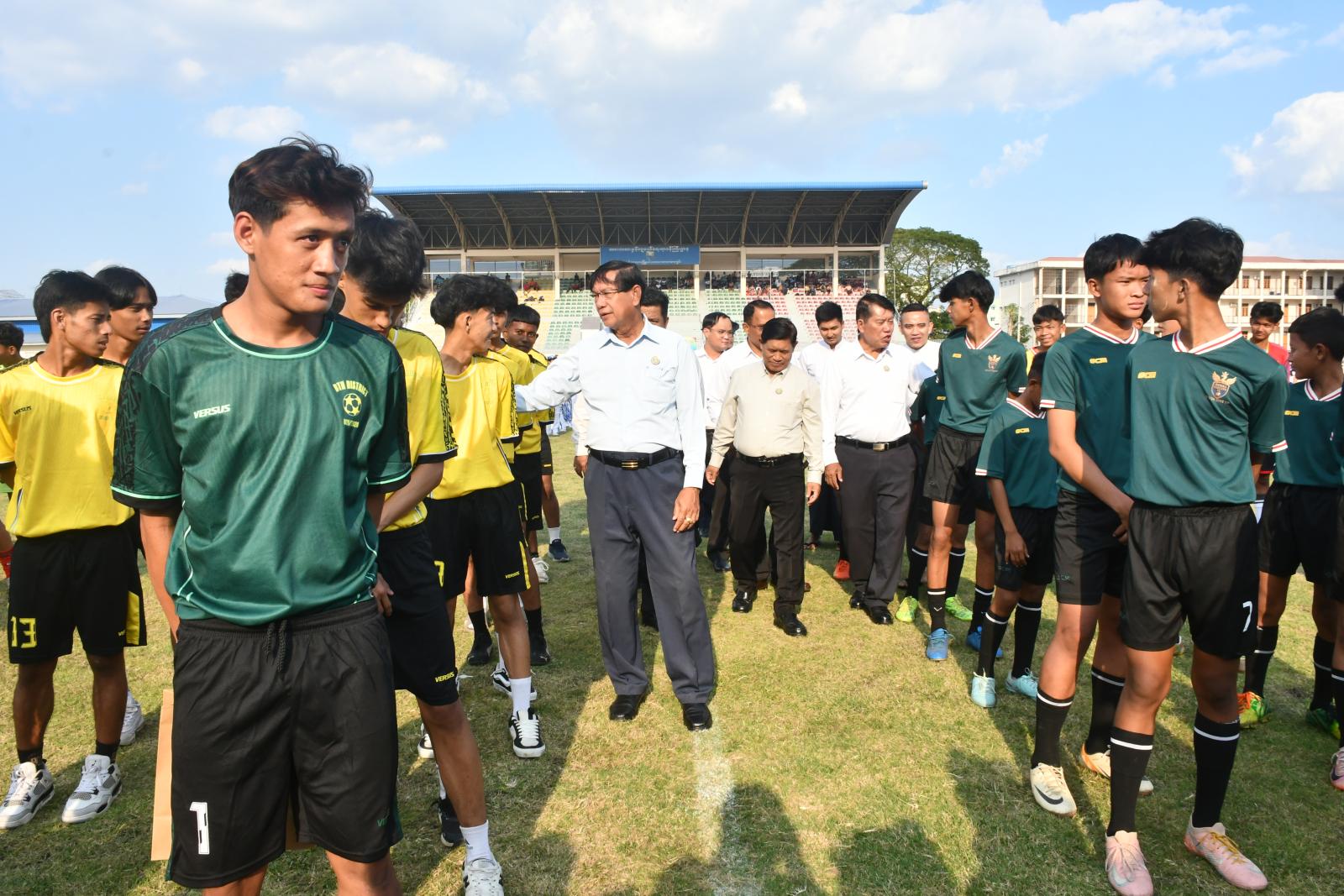 ယင်းနောက် ရန်ကုန်တိုင်းဒေသကြီး ဝန်ကြီးချုပ် ဦးစိုးသိန်းနှင့် အဖွဲ့က ပထမပွဲစဉ်အဖြစ် ဒဂုံမြို့သစ်ခရိုင်အသင်းနှင့် မရမ်းကုန်းခရိုင်အသင်းတို့၏ ယှဉ်ပြိုင်ကစားနေမှုအား ကြည့်ရှုအားပေးသည်။