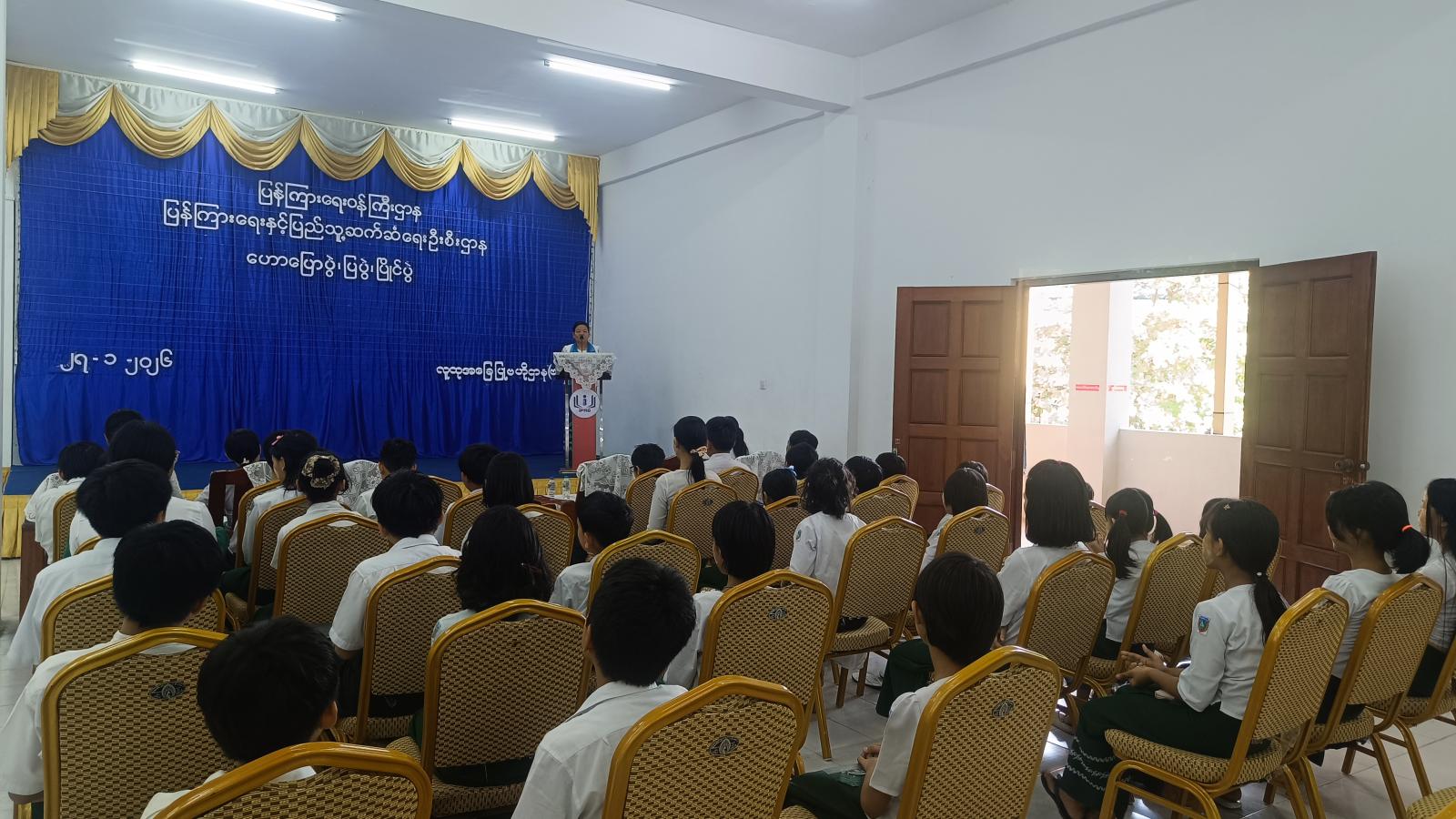 ရှေးဦးစွာ လက်ထောက်ညွှန်ကြားရေးမှူး ဒေါ်အေးအေးခိုင်က အဖွင့်အမှာစကားပြောကြားပြီး လူငယ်များ မူးယစ်ဆေးဝါးအန္တရာယ်သိရှိပြီး လိမ္မာယဉ်ကျေးသော လူငယ်များဖြစ်စေရန်အတွက် "လူငယ်နှင့် မူးယစ်ဆေးဝါးအန္တရာယ်" ခေါင်းစဉ်ဖြင့် ဟောပြောခဲ့ကြောင်း သိရပါသည်။