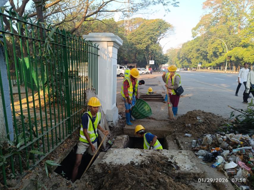 ရန်ကုန်တက္ကသိုလ်တွင် ယနေ့နံနက် (၇) နာရီချိန်မှစတင်၍ ကမာရွတ်မြို့နယ် အမှတ် (၉) ရပ်ကွက်တက္ကသိုလ်ရိပ်သာလမ်း (အဓိပတိလမ်းထိပ်မှ အင်းယားလမ်းထိ) မြို့နယ်စည်ပင်ရုံးမှ ဝန်ထမ်းများ၊ လမ်းတံတားမှ ဝန်ထမ်းများ၊ ရေစီးရေလာမှ ဝန်ထမ်းများ၊ ပန်းဥယျာဉ်နှင့် ပတ်ဝန်းကျင်သန့်ရှင်းရေးဌာနမှ ဝန်ထမ်းများ စုစုပေါင်းအင်အား (၃၅) ဦးဖြင့် လမ်းဘေးဝဲ/ယာရှိ အမြင်မတင့်တယ်သည်များကို ရှင်းလင်းခြင်း၊ အပင်အောက်တက်ရှင်းလင်းခြင်း၊ ရေမြောင်းရှင်းလင်းခြင်း၊ ရေမြောင်းနှာပေါက်များ ရှင်းလင်းဆောင်ရွက်ခဲ့ပါသည်။