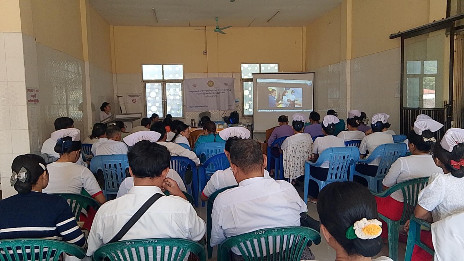 ရှေးဦးစွာ မြို့နယ်ကျန်းမာရေးဦးစီးဌာနမှူး ဒေါက်တာမင်းညွန့်ဝင်းက အဖွင့်အမှာစကားပြောကြားပြီး မြို့နယ်ကျန်းမာရေးဦးစီးဌာန(ကူးစက်)ဌာနမှ ကျန်းမာရေးမှူး(၂) ဒေါ်နီနီမာမှ ကာကွယ်ဆေးထိုးလွှမ်းခြုံမှု ပိုမိုမြင့်မားစေရေးနှင့် လက်ရှိဆောင်ရွက်နေသော ကာကွယ်ဆေး ထိုးနှံတိုက်ကျွေးမှု အခြေအနေများကို ရှင်းလင်းဆွေးနွေးခဲ့ပြီး မြို့နယ်ပြည်သူ့ကျန်းမာရေးဦးစီးဌာနမှ ဆောင်ရွက်ခဲ့မှုမှတ်တမ်း video များ ပြသခဲ့ကြောင်း သိရသည်။