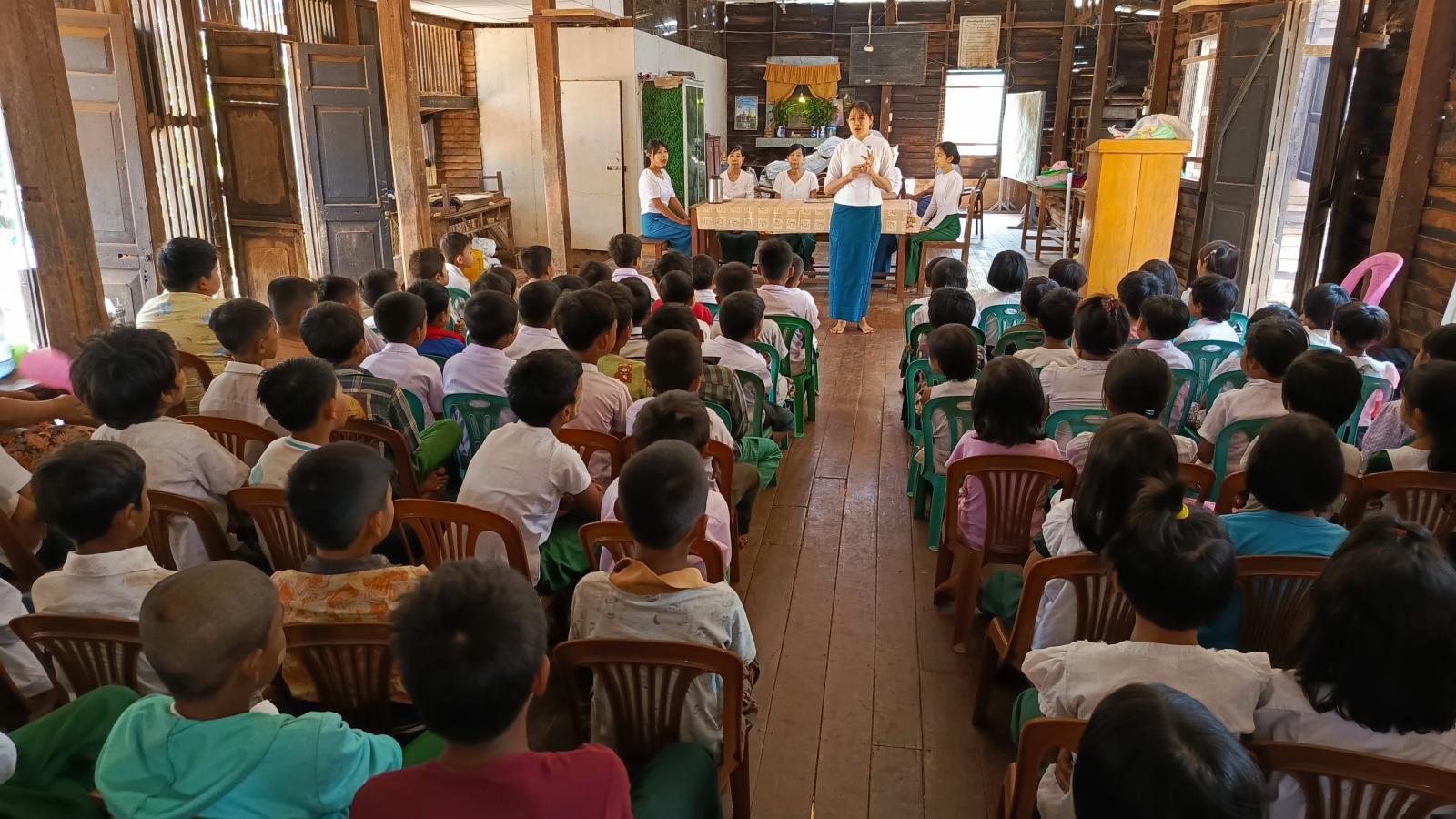 အသိပညာပေးဆောင်ရွက်ရာတွင် ပြန်ကြားရေးနှင့်ပြည်သူ့ဆက်ဆံရေးဦးစီးဌာန မြို့နယ်ဦးစီးမှူး ဒေါ်စန္ဒာအောင်နှင့် ဒုတိယဦးစီးမှူး ဒေါ်ဇင်မာဝင်းတို့က ကျောင်းသား/သူများအား စာဖတ်ခြင်းရည်ရွယ်ချက်များ၊ စာဖတ်ခြင်းကြောင့်ရရှိနိုင်သောအကျိုးကျေးဇူးများ၊ လူကုန်ကူးမှုအကြောင်း၊ ကလေးအလုပ်သမားပပျောက်ရေး၊ သဘာဝဘေးအန္တရာယ်သိကောင်းစရာများကို ပြောကြားခဲ့သည်။